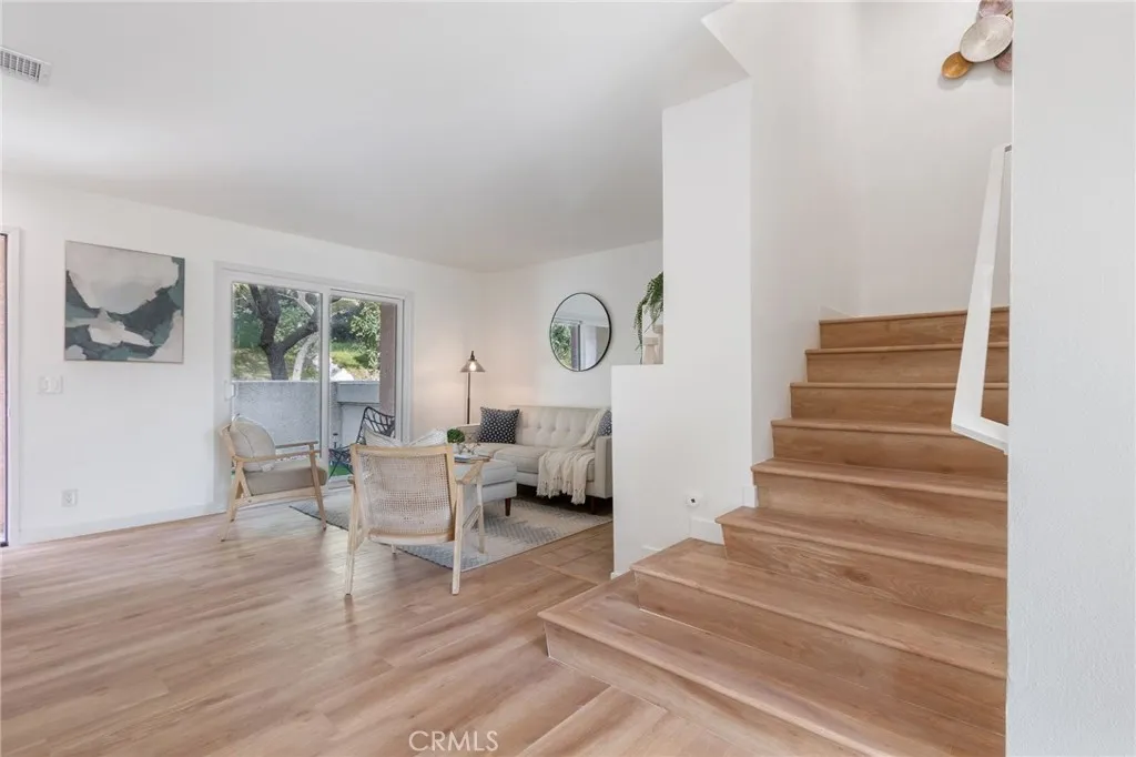 Turn-key and beautifully upgraded, this Portofino Villa townhome truly checks every box. Situated in a prime interior location within the gated community, this fully remodeled three-bedroom, two-and-a-half-bath residence offers nearly 1,300 sq. ft. of modern, low-maintenance living. Recently renovated from top to bottom, the home features fresh interior paint, layered LED lighting, gorgeous wood-grain LVP flooring throughout, a brand-new HVAC system with smart thermostat, and new Milgard windows and sliding doors. The stunning new kitchen is appointed with quartz countertops, wood shaker cabinetry, and new stainless-steel appliances. Additional upgrades include a new Chamberlain myQ garage door motor and updated systems throughout. Upstairs, the spacious primary suite offers vaulted ceilings, a walk-in closet, dual-sink vanity, and a private balcony overlooking a peaceful landscaped greenbeltyour own quiet retreat. A two-car attached garage provides direct entry plus a versatile bonus space perfect for a home gym, workshop, or extra storage. Ideally located for commuters and outdoor enthusiasts, the home offers easy access to public transportation including the nearby Metrolink station connecting Lancaster to Downtown Los Angeles, as well as the San Fernando Road bike path stretching from Sylmar to Burbank. Enjoy weekends at the Hansen Dam Recreation Center, featuring an aquatic center, equestrian trails, the Discovery Cube science museum, and the adjacent 18-hole city golf course. Move-in ready, highly upgraded, and centrally locatedthis is one you dont want to miss!!