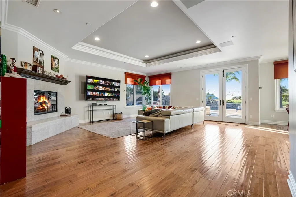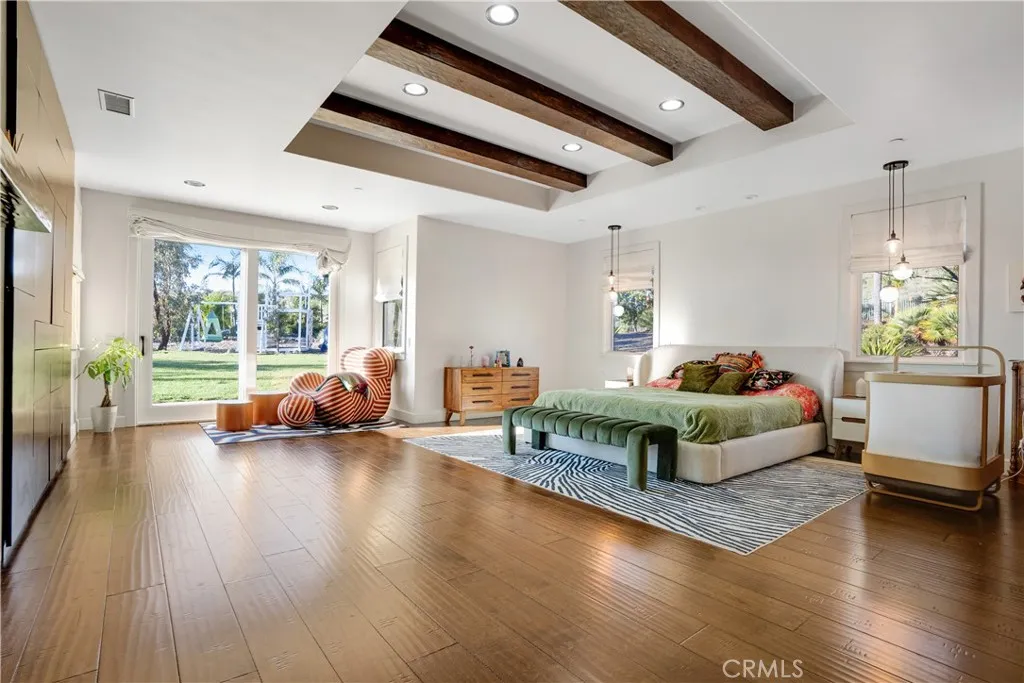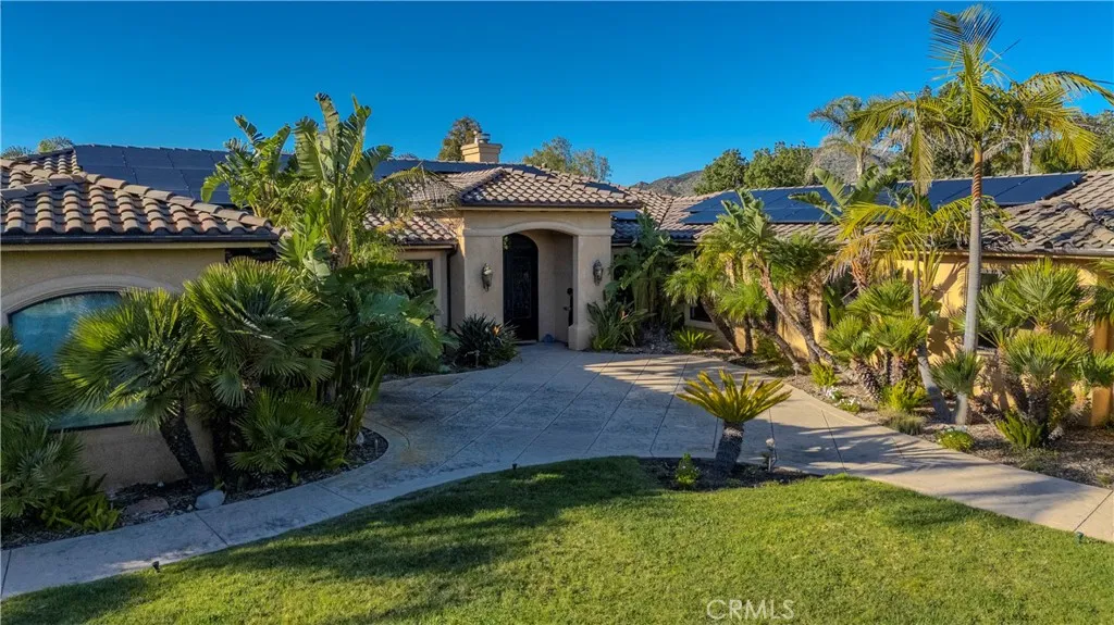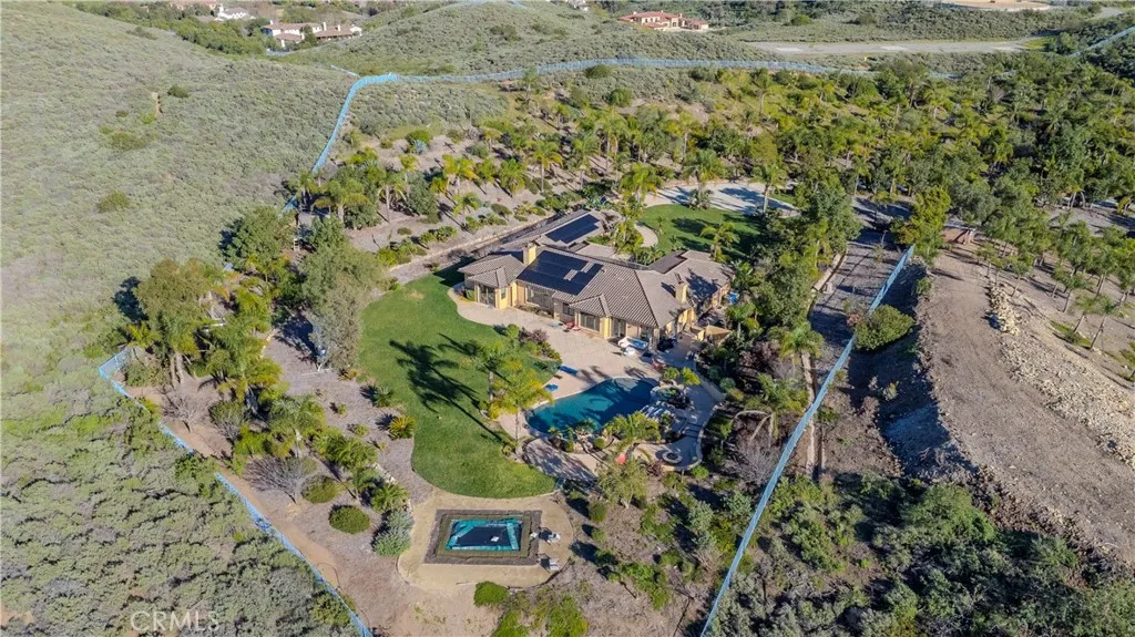 A rare opportunity to own one of the largest and most private estates in Dos Vientos Ranch. Located behind the gates of prestigious La Serena Estates, this exceptional single-story Spanish residence sits on approximately 7.5 acres of irreplaceable land, offering sweeping mountain and canyon views, unmatched privacy, and true resort-style living. A dramatic 600-foot private driveway creates a grand sense of arrival and leads to a beautifully designed estate featuring six bedrooms, five bathrooms, a three-car garage, and extensive guest parking. A new state-of-the-art solar system enhances efficiency while complementing the homes luxury profile. Inside, soaring ceilings, refined architectural details, and expansive windows fill the home with natural light and frame stunning views. The chefs kitchen showcases a large center island, quartz countertops, custom cabinetry, walk-in pantry, and premium appliances, flowing seamlessly into a spacious family room ideal for both intimate gatherings and large-scale entertaining. The primary suite is a private retreat with a fireplace, custom walk-in closet, and spa-inspired bath. Outdoors, the grounds rival a private resort. Amenities include a saltwater pool with cascading water slide and raised spa, fire pit, built-in BBQ, sports court, in-ground trampoline, zip line, half-pipe skateboard ramp, and multiple scenic seating areas designed for entertaining and recreation. With significant usable acreage, the property offers exceptional future potential to add a guest house, tennis court, expanded garage facilities, or further enhancements