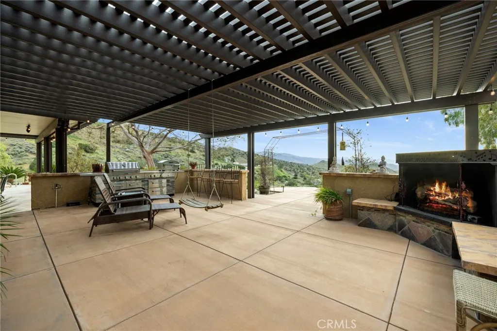 Spacious single-story 3,000 sq ft view home in beautiful Agua Dulce, CA, situated on over 6 private acres, offering tranquility, open space, and scenic surroundings. This home features a functional 3 bedroom and 3 full bathroom open layout with generous living areas filled with natural light, a gourmet kitchen equipped with Viking appliances, and ample storage. A dedicated game room provides flexible space for recreation or entertaining, while well-sized bedrooms offer comfort and versatility for family or guests. Cozy up by the fireplace or pellet stove for added warmth and ambiance. Recent updates include a newer roof, newer HVAC system including 3 main rooms served by a new mini split to offset cooling costs, and septic system and upgraded bathrooms for added peace of mind. The entertainers backyard is designed for relaxation and gatherings, featuring an in-ground pool and spa, expansive grounds, and breathtaking views. A large patio with fireplace showcasing the amazing sunset views. The property also includes a 3-car garage with ample RV and boat parking, perfect for hobbyists or outdoor enthusiasts. Conveniently located with easy access to shopping, dining, and schools, this home offers the ideal combination of privacy, luxury, and functionality. A rare opportunity to own a view property with acreage, resort-style amenities, and everything needed for comfortable, elegant living. Come for a visit. Stay for a lifetime. Welcome Home!