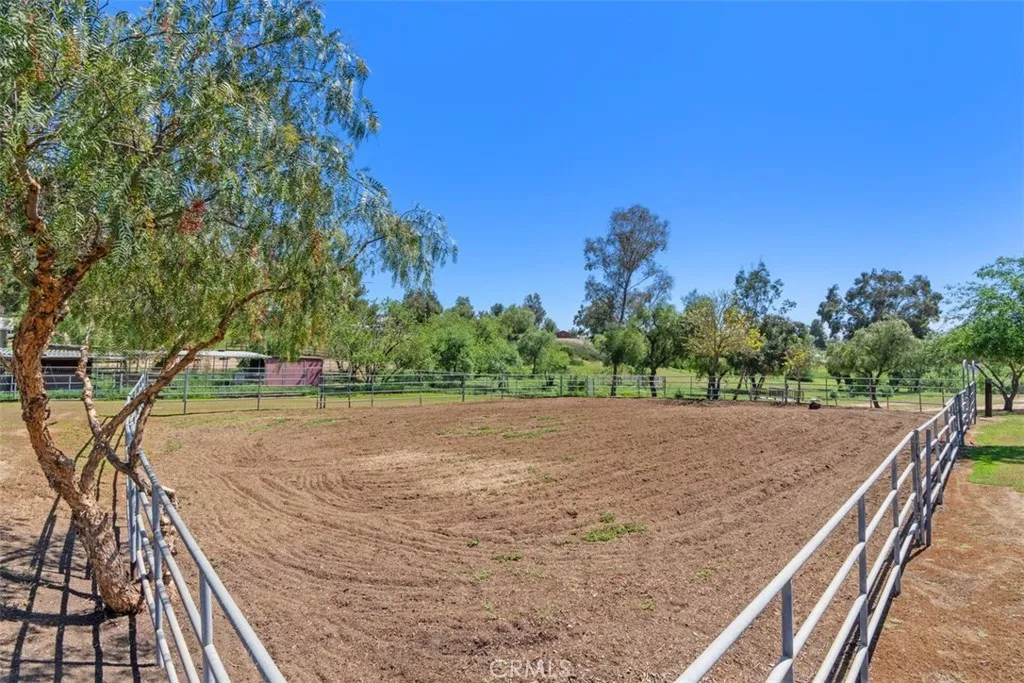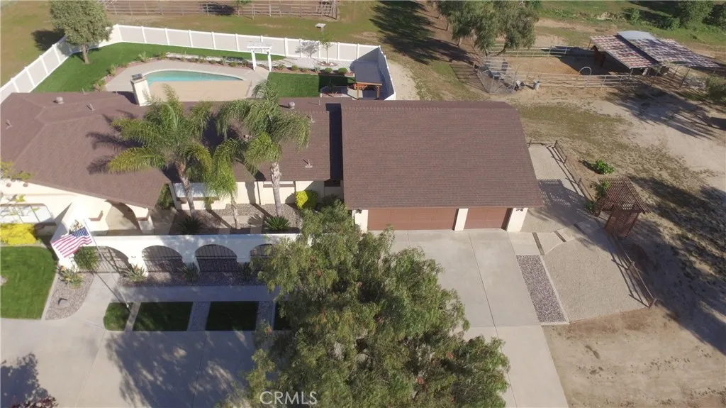 Welcome to this Murrieta estatean inviting, custom single-story oasis set on 3.26 acres of well-maintained land where natural beauty, usable space, and everyday comfort come together. Nicely remodeled, this home blends modern luxury with the calm of country living, creating a lifestyle designed for both relaxation and recreation. Inside, the open-concept layout is filled with warmth and character, highlighted by a striking tongue-and-groove wood beam ceiling and a dramatic floor-to-ceiling stone fireplace. Thoughtful details continue throughout, including bench window seating, brand-new stainless steel appliances, granite countertops, and high-end finishes. Fresh paint and upgrades shine with luxury vinyl flooring, soft carpet in the bedrooms, and new baseboards throughout. The home offers 3 spacious bedrooms and 2.5 updated bathroomswith oversized bedrooms, a luxurious primary suite, and a generous walk-in closet. Both full bathrooms feature double-sink vanities. New window coverings throughout complete the clean, finished look. Step outside and fall in love with the private backyard paradise, professionally landscaped. Take a dip in the swimming pool, unwind beneath the covered patio, or fire up a grill under the stylish cabanaan ideal setting for gathering with friends and family. The backyard is enclosed with vinyl fencing, creating a safe, private outdoor sanctuary. Beyond that, the entire 3.26-acre property is surrounded by secure chain-link fencing, offering peace of mind and plenty of room for RVs, boats, trailers, and recreational toys. A three-car garage and stora