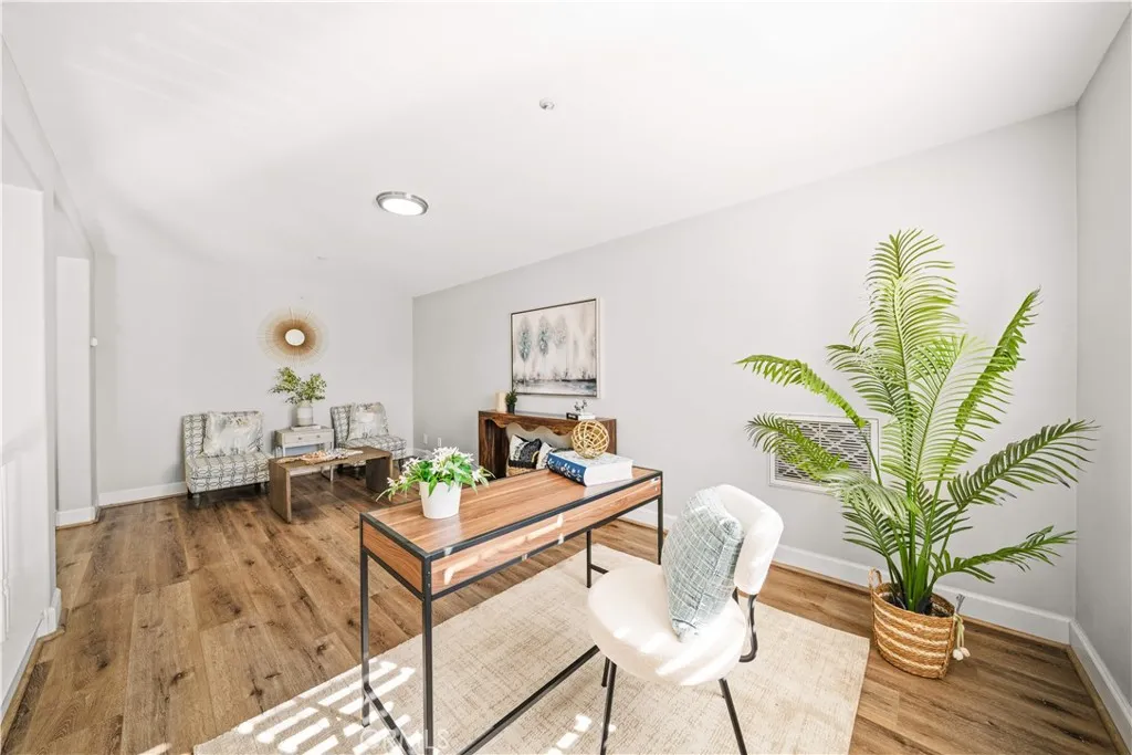 Welcome to this stunning end-unit residence in the highly sought-after Chambray community of Ladera Ranch, featuring soaring two-story ceilings, abundant natural light, and tasteful upgrades throughout. This worry-free living community includes high-speed internet, fire insurance, and exterior maintenance. The bright and open 2-bedroom, 2-bath floor plan is enhanced by new laminate wood flooring and a warm, inviting main living area. The modern kitchen offers white cabinetry, quartz countertops, stainless steel appliances, and recessed lighting, seamlessly connecting to the living and dining spaces. Step outside to the private front patioperfect for relaxing or entertaining while enjoying neighborhood views and evening lights. The spacious primary suite includes a walk-in closet and an updated en-suite bath with dual sinks, while the secondary bedroom is served by a full hall bath. An expansive upstairs loft provides flexible living space. Additional highlights include an in-unit washer and dryer. There are two car parking space: an attached one-car garage, and an assigned parking space #82 located directly in front of the unit. Residents enjoy resort-style amenities, including pools, splash parks, clubhouses, sports courts, trails, a dog park, and community gardens, all within walking distance to Bridgepark Plaza with shopping and dining. This exceptional end-unit home offers comfort, style, and the best of Ladera Ranch living.