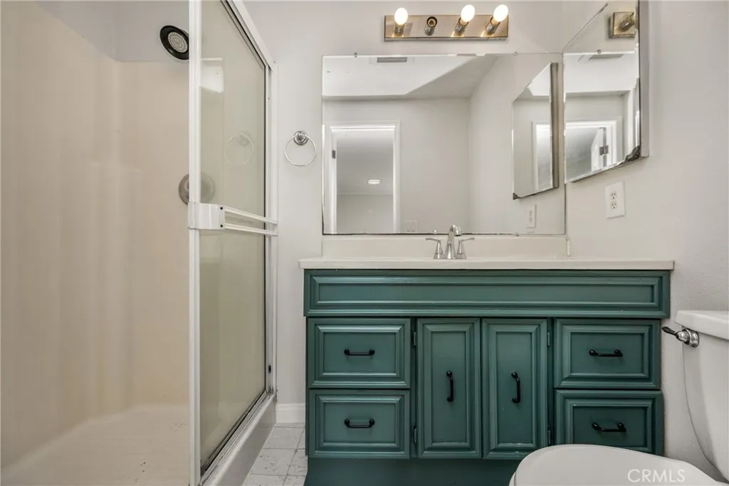 Situated on a generous 9,743 sq. ft. lot in a quiet cul-de-sac location with ADU potential, this 5-bedroom, 3-bath home offers a flexible floor plan ideal for todays lifestyles, including multi-generational living. The home features a spacious layout with a large upstairs primary suite and 4 bedrooms on the main level, perfect for extended family, guests, or home office needs. The home is equipped with valuable system upgrades, including a 14-panel fully owned solar system, a Daikin mini-split A/C and heating system with individual thermostats in every bedroom and dual condenser units, and a Noritz tankless water heater, providing energy efficiency, comfort, and long-term savings. Designed with accessibility and functionality in mind, this zero-entry, ADA-compliant home provides effortless flow throughout. The home has been recently refreshed with new interior and exterior paint and new carpet in the upstairs primary bedroom. Natural light fills the living spaces, and the thoughtful design provides both comfort and functionality. Approximately 5,000 sq. ft. of Orco pavers cover the driveway and hardscape areas, complemented by custom ironwork at the courtyard gate and fencing. RV side access offers exceptional flexibility, with turf-over-concrete in the front yard engineered to support RV parking and a fully paved RV side that can also serve as extra parking or outdoor flex space. The oversized lot provides excellent space for entertaining, expansion, or future ADU possibilities, while the private backyard, lined with bamboo planters, offers privacy, room to grow, and an el