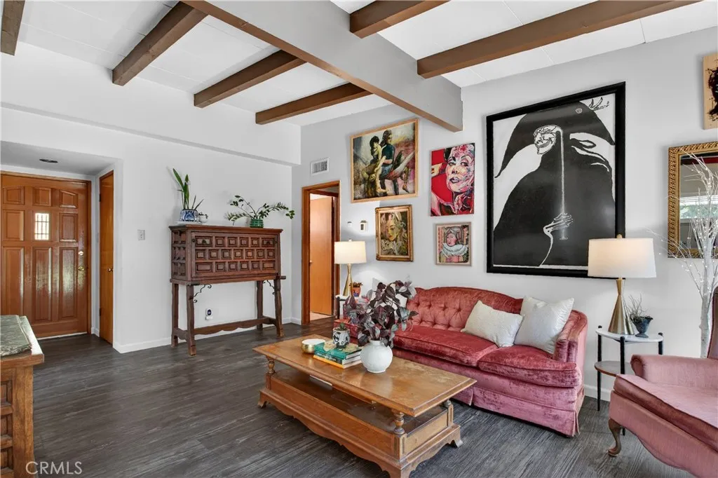 Welcome to this one-of-a-kind midcentury gem tucked into a quiet, interior-tract location in an unincorporated Corona neighborhood. Set on a very generous 7,405 sqft lot, this 4-bedroom, 2-bath home blends character, comfort, and flexibility in all the right ways. From the moment you arrive, the covered front porch invites you to slow down and enjoy the SoCal weather. Inside, the home showcases WARM, TIMELESS DESIGN with stunning WOOD BEAMS and floor-to-ceiling brickwork at the fireplace that anchor the living space. The cozy midcentury modern vibe is both inviting and functional, with great wall space and updated lighting throughout. The layout features 4 VERSATILE BEDROOMS that can be used as true bedrooms, an office, gym, or guest space all designed to fit your lifestyle. Whether youre relaxing on the couch or working in the back office overlooking the yard, every space feels welcoming. Love to entertain? Youll appreciate the LARGE INDOOR AND OUTDOOR SPACE, complete with TWO PATIO AREAS perfect for grilling, hosting friends, or enjoying quiet evenings. The private backyard is lined with tall trees and includes FOUR TYPES OF FRUIT TREES: two braided orange trees in front, plus orange, lemon, and lime trees in back, offering shade and sweet seasonal harvests to share. Theres also ROOM FOR AN ADU, giving you future flexibility in this unincorporated area. The long driveway offers potential for RV parking, boats, or recreational toys. Major upgrades are already done, including a new heater and water heater, new ductwork, water softener and filter, updated flooring and basebo