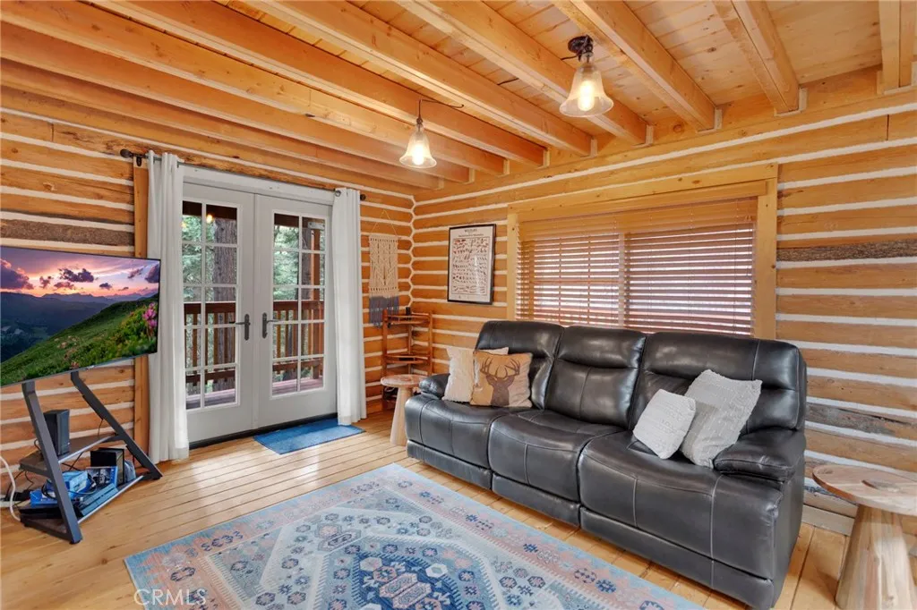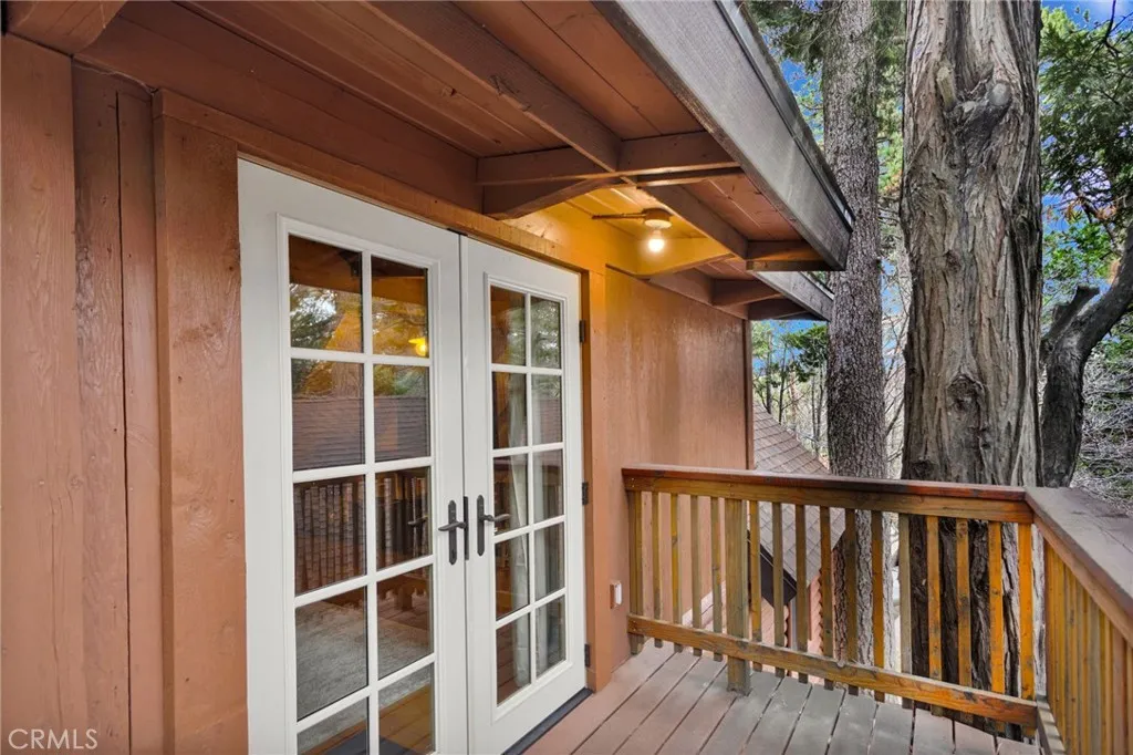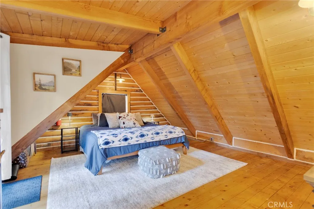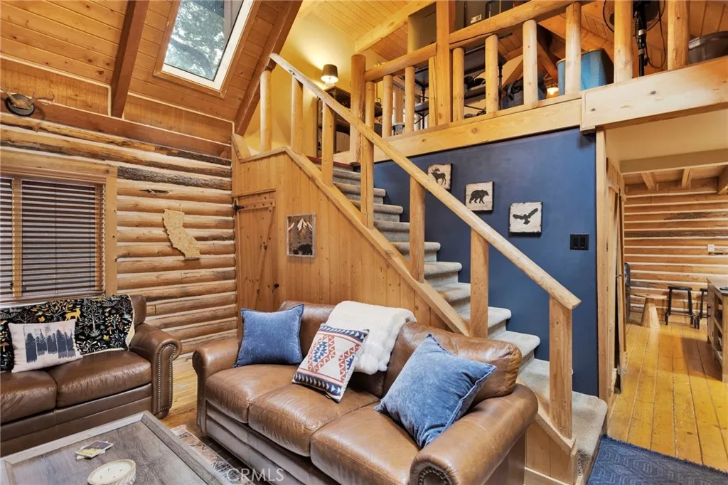 If you have been dreaming of a charming mountain escape filled with warmth and possibility, 788 Buckingham Square delivers a truly special opportunity. This charming log cabin tucked among the pines of Arrowhead Villas, offering more flexibility than a typical one-bedroom home. Just inside the entry is a practical mud room for removing shoes and outerwear before entering the main living space. The living room features vaulted ceilings, exposed wood beams, skylights, and a beautiful stone fireplace, creating a bright and comfortable gathering area. The kitchen sits next to a versatile bonus space that can function as a dining area, office, or additional sleeping area, and includes a newer refrigerator, new composite French doors, and washer and dryer in the closet. Upstairs, the loft-style primary suite offers privacy, its own balcony also with new composite French doors, and a treehouse feel. The home has been meticulously maintained with numerous upgrades including a roof installed in 2019, Nest thermostat, newer water shutoff, newer heater and HVAC ducting, fully insulated and foil-sealed buildup, Leaf Filter rain gutters with downspouts, and a 30-amp power connection with generator hookup. A wraparound deck provides outdoor space to relax. Also, there is a quarterly fee of $280 that covers water, trash, and snow removal. It is located just minutes from Lake Arrowhead Village, SkyPark, trails, dining, and Highway 18, this property offers both convenience and mountain charm. Come check out this amazing mountain cabin today!