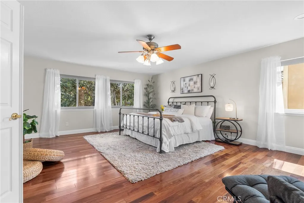 Just in time for summer, this pool home offers... A spacious 4 bedroom, 2.5 bathroom home, 2,564 square feet of living space and is set on an interior street in a beautiful Rancho Cucamonga neighborhood with no HOA. The large island kitchen features quartz countertops, ample cabinetry, and stainless steel appliances, including a new cooktop and range hood, along with a newer oven, microwave, and dishwasher. The kitchen opens to the family room, offering clear sightlines and a functional everyday layout. Hardwood flooring runs throughout the main living areas and is complemented by fresh interior paint, dual pane Pella windows, and thoughtful upgrades throughout the home. Each bedroom features a ceiling fan and a walk in closet with custom organizers and built in valet rods. The primary suite offers a generously sized bathroom with dual vanities, a separate tub and shower, and a large walk in closet. The upstairs hall bathroom has been fully upgraded. The front yard showcases low maintenance landscaping with attractive trees and rose bushes. The backyard features a covered patio, a fire pit, and a gorgeous play pool and jacuzzi. The play pool is designed for both fun and function, approximately 3.5 feet deep on one end, 5 feet in the center, and 4 feet on the opposite end, making it ideal for entertaining, games, and everyday enjoyment. The fully fenced yard offers a space to relax. The home is conveniently located near parks, walking trails, access to the 210 freeway, just a short drive to Victoria Gardens and minutes from top-rated schools .