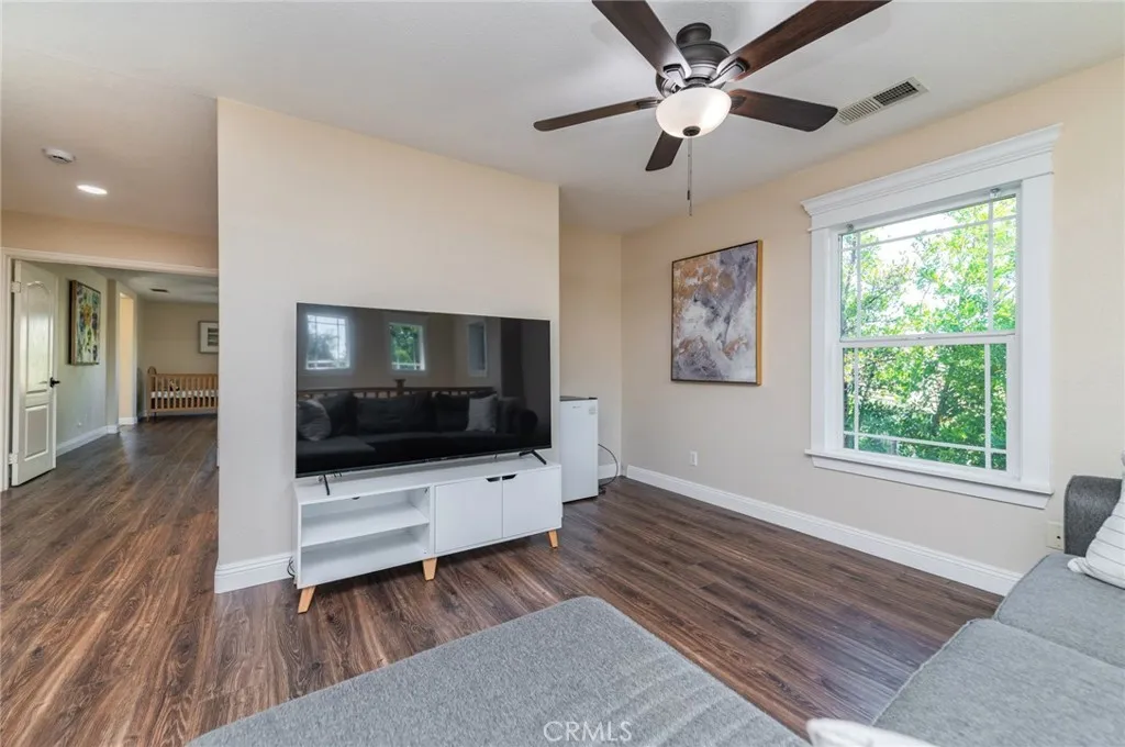Absolutely stunning home located in Rancho Cucamonga within the highly desirable Windsor II at Terra Vista community. Beautifully maintained, this corner-lot home offers 3 bedrooms, 2.5 bathrooms, plus a bonus room and a loft. Upon entry, you are greeted by soaring ceilings in the living room and a bright, open floor plan. The home features a fireplace downstairs, a separate bonus room ideal for a home office, den, or optional fourth bedroom, and an open-concept kitchen, dining, and living areaperfect for both everyday living and entertaining. Contemporary laminate flooring flows throughout the entire home. All bathrooms feature updated porcelain tile and modern light fixtures. The kitchen is appointed with quartz countertops, under-counter and countertop lighting, updated modern fixtures, an oversized pantry, and ample cabinetry. Recent major upgrades include a new HVAC system installed in June 2025, featuring a 4-ton AC Pro by Allied Systems, ultra-low NOx furnace with ECM motor, Sensi Wi-Fi thermostat, new condenser with coil, and updated ductworkproviding excellent energy efficiency and year-round comfort. Additional electrical improvements include four breakers replaced in January 2026 and updated hardwired CO/smoke alarms. The generously sized bedrooms include mirrored wardrobe doors. The primary suite offers an oversized soaking tub, a separate walk-in shower, and a spacious walk-in closet. Enjoy a nicely sized fenced side yard/patio, perfect for outdoor relaxation. The low HOA includes water and landscaping and offers a community playground. Ideally located near awa