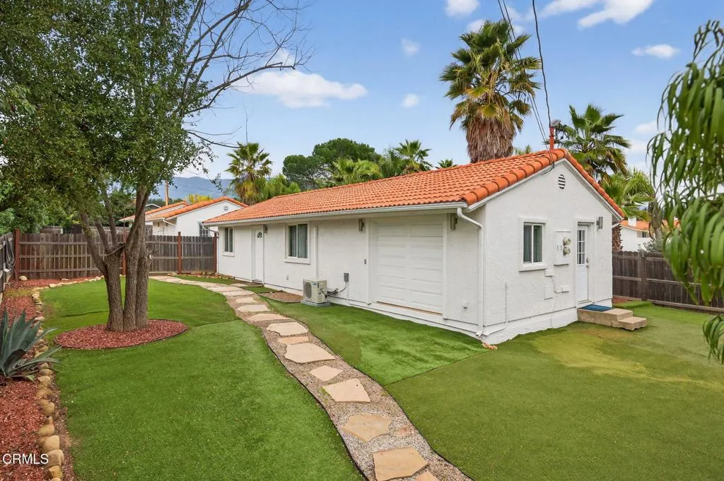 Exceptional gated Ojai compound with four independent structures, and a resort-style pool courtyard on 1.41 private acres. Designed as a true multi-structure estate, the property spans four separate buildings making it ideal for multi-generational living, creative use, or boutique retreat potential. The resort-style pool courtyard anchors the estate and delivers that private resort experience with an approximately 40-foot pool, dual Baja shelves, six waterfalls, a dramatic 20-foot fire wall, an inset spa, and a glow-in-the-dark pathway, all surrounded by new luxury turf and is visible from much of the main residence. The over 4,000-sq-ft main home features 6 bedrooms and 6 bathrooms with high ceilings, abundant natural light, and seamless indoor-outdoor flow, along with an attached mother-in-law suite offering its own private exterior entrance for added independence. A discreet concrete ramp serves the rear primary suite, providing elegant accessibility without compromising design. A separate 3-bedroom, 1-bath guest house includes its own gated street entrance, open kitchen, exterior laundry, fenced yard with turf, and a mini-split HVAC system for individualized year-round comfort. Two additional structures were used for family members with each having private entrances, fenced yards, and mini-split systems, making them ideal for home offices, studios, family or visiting friends. Mature fruit trees are scattered throughout the grounds, while a large open central area creates natural separation between structures and offers future possibilities such as gardens, recreation sp