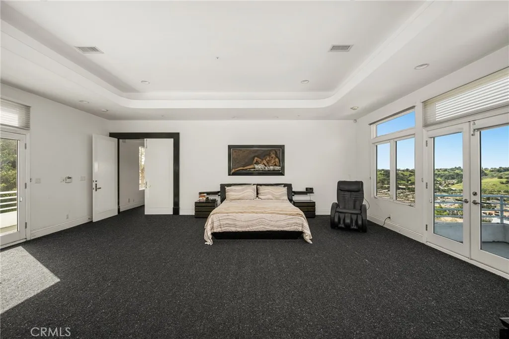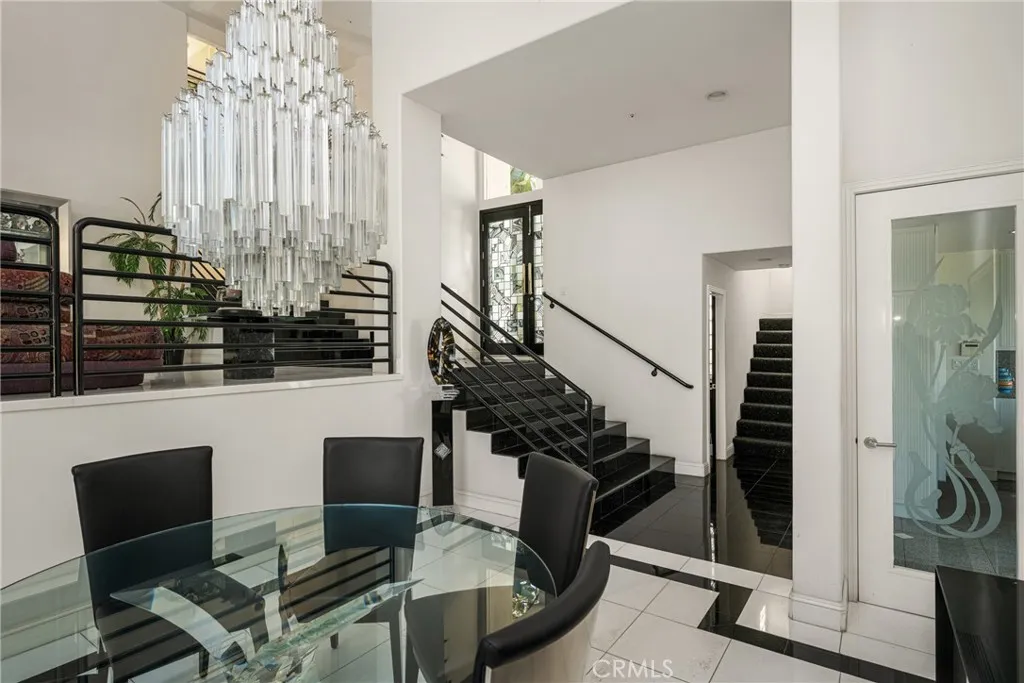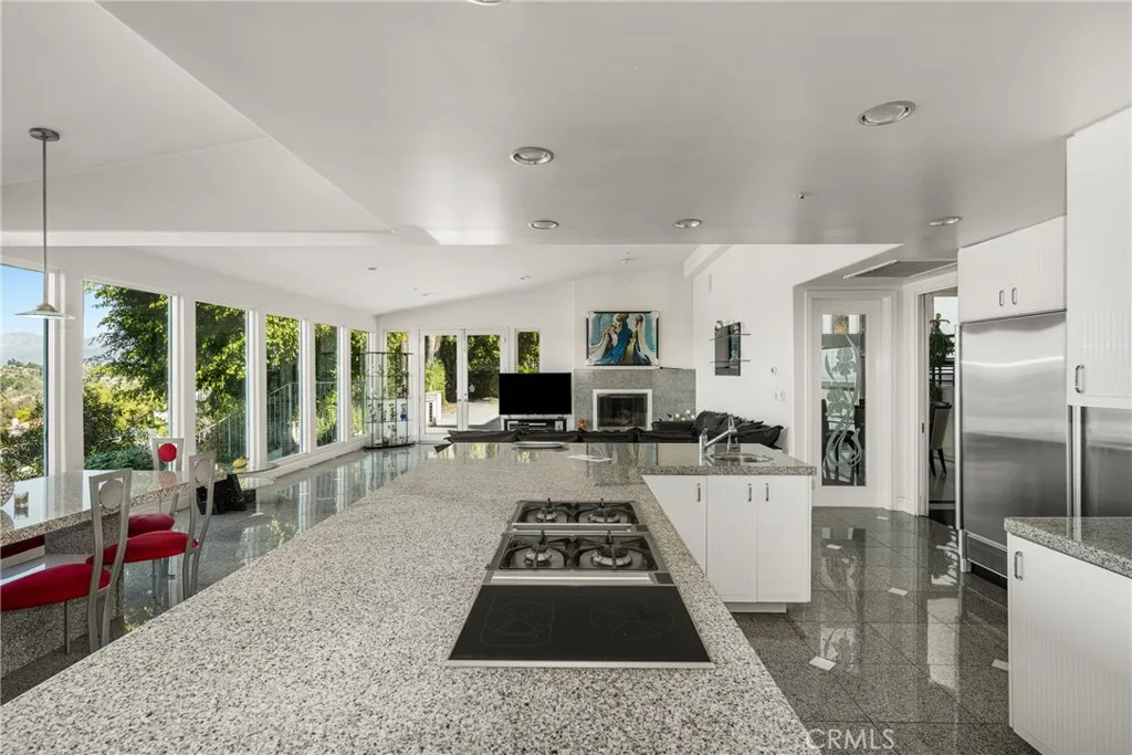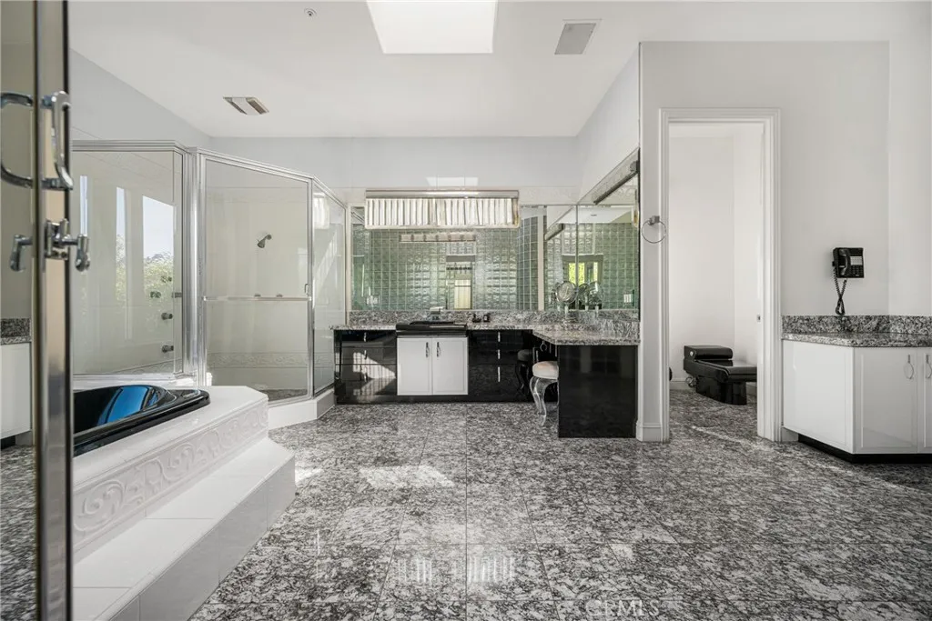 Welcome to 2820 Shadow Canyon Drive, an extraordinary hilltop estate within the prestigious 24-hour guard-gated community of The Country in Diamond Bar. Showcasing sweeping city lights and San Gabriel Mountain views, this private retreat offers elegance, scale, and breathtaking scenery from nearly every vantage point. Spanning 8,264 square feet on an expansive 1.69-acre lot, this custom residence embodies refined luxury living. A long private driveway leads to a stately entrance where soaring ceilings, abundant natural light, and dramatic floor-to-ceiling windows create an immediate sense of grandeur. The main family room frames spectacular vistas, seamlessly blending indoor and outdoor living. The home features eight spacious bedrooms, including two primary suitesone on each level. The upstairs primary suite is a true sanctuary with dual private balconies, two walk-in closets, dual spa-inspired bathrooms, and panoramic city and mountain views. Two additional junior suites upstairs provide comfort and privacy. On the main level, a second primary suite offers direct pool access, complemented by three additional bedrooms, including another junior suite. Designed for both grand-scale entertaining and everyday living, the residence offers formal living and dining rooms along with multiple family rooms that flow effortlessly to the outdoors. The chefs kitchen is thoughtfully appointed with a large center island, white lacquer cabinetry, granite countertops, Sub-Zero refrigerator and freezer, Gaggenau fryer, charcoal grill and cooktop with downdraft vent, Dacor double ovens, NuTo