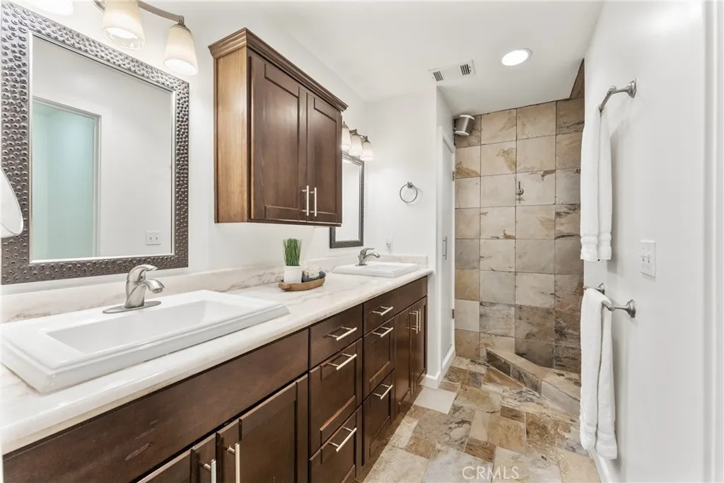 Its not just a house, its an all-inclusive resort. This sprawling single story on 1+ acre lot is fully landscaped and loaded with luxurious amenities! You and your family will enjoy swimming, soaking in the jacuzzi, relaxing in the sauna, taking a brisk cold plunge, playing beach volleyball, basketball, or tennis, perfecting your game on the putting green, roasting marshmallows over the firepit, cooking in your outdoor gourmet kitchen, or simply unwinding in the poolside cabana with its fireplace and media system. This completely updated home has been meticulously designed and decorated, both inside and out. The interior and cabana were repainted in 2026. In the kitchen, discover Caesarstone quartz countertops, updated subway tile & faucet, and top-of-the-line appliances. Plenty of built-in features throughout, including a wet bar with custom cabinetry, a Sub-Zero wine fridge and beverage fridge, and a marble countertop. Your primary suite features a walk-in closet, an ensuite bath, and an adjoining office with direct patio access. With the addition of a separate exercise room, along with your resort-style backyard retreat, this estate is designed for both active lifestyles and supreme relaxation. A sprawling garden includes raised beds, three varietals of grape vines, and several fruit trees, including pear, Meyer lemon, Eureka lemon, avocado, mandarin, grapefruit, and Valencia orange. Updated WiFi Nest thermostats and security cameras. Owned solar with 50 panels. Electric car chargers in your garage. Additional space for RV parking. Schedule your private showing!