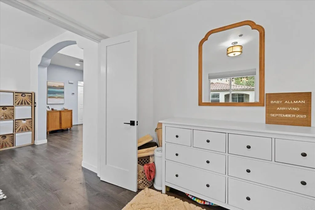 Welcome to one of the most desirable gated communities in San Elijo Hills, where walkability, top-rated schools, and resort-style amenities come together. This beautifully maintained 2-bedroom + office, 2-bath home offers 1,342 square feet of light-filled living with soaring ceilings and an ideal, functional floorplan. Located in the gated Springfield community with access to a private pool and just a short stroll to top-rated elementary and middle schools, parks, and town center shopping, the location is hard to beat. Inside, the open-concept main living area features luxury vinyl plank flooring, abundant natural light, and a seamless flow between the living, dining, and kitchen spaces. The inviting living room is anchored by a stacked stone fireplace hearth and opens to a private balcony, perfect for morning coffee or evening relaxation. The kitchen offers crisp white cabinetry, tiled countertops, gas cooking, and a breakfast bar that connects easily to the dining area, making everyday living and entertaining effortless. Fresh new carpet on the stairway and in the primary suite adds a crisp, move-in-ready feel. The primary bedroom features mirrored closet doors and an en-suite bath with dual sinks and a shower/tub combination. A versatile office with custom French doors currently used as a nursery, provides flexible space ideal for a home office, guest room, or potential third bedroom. Thoughtfully designed with great natural light, clean finishes, and move-in-ready appeal, this home offers both comfort and convenience in one of North Countys most sought-after neighborhoo