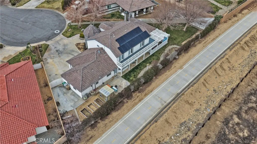 Owned solar with backup batteries, soaring ceilings, RV hookups, and a layout that actually works. This is a substantial, well-built home at the end of a quiet cul-de-sac in Spring Valley Lake, offering space, light, and privacy that are increasingly hard to find. The home has real presence when you walk in. High ceilings and expansive windows bring in natural light, and the main living areas feel open and well-proportioned. The kitchen looks into the family room, so youre not cut off from the rest of the house, and the wood-burning stove adds warmth to the main living space. The primary suite is on the main level with its own fireplace and direct access to the backyard, creating a true main-level retreat. Upstairs, two additional bedrooms and the large bonus/game room with wet bar all open to an expansive upper deck with open riverbed and mountain views. Both the front and back yards are usable, with grass, patio space, and a rear storage shed tucked into the corner of the lot. Other practical features include central vacuum throughout the home, indoor laundry with utility sink, RV parking with hookups and dump, and a three-car garage. The exterior stone and wood siding, along with the homes overall construction, give it a solid, lasting feel you dont see much in newer builds. Spring Valley Lake offers private lake access, golf, beach areas, parks, and tennis and basketball courts. This is a home that offers real utility, space, and long-term value.