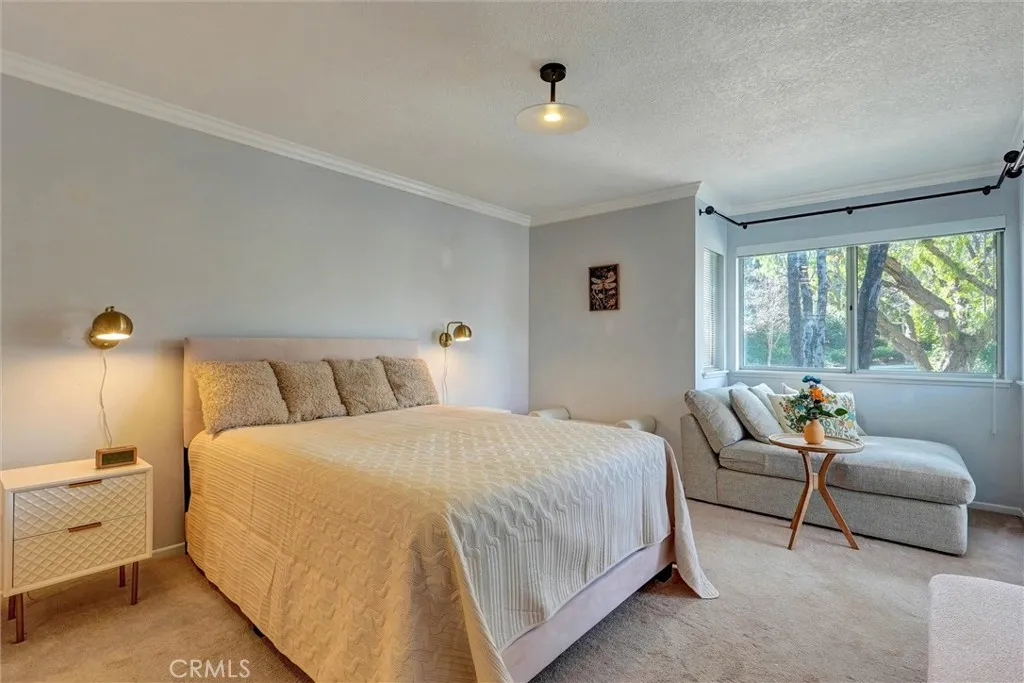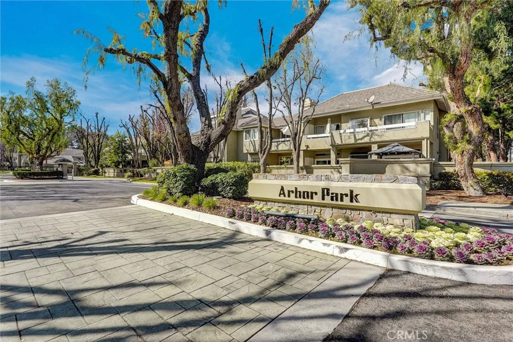 This stunning home has an assumable FHA loan at a low interest rate! Ideally located within the desirable Arbor Park gated community in the heart of Valencia which offers a peaceful retreat surrounded by beautifully maintained grounds. Enjoy serene views from both the front patio deck and back balcony, perfect for your morning coffee or evening sunsets! Inside, the open layout is enhanced by high ceilings with beautiful crown molding, which create a bright and spacious atmosphere throughout. The primary suite includes a spacious bedroom, large mirrored closets providing ample storage, and a bathroom with dual vanities and luxury hardware. The central fireplace, visible from the living room, dining area, kitchen, and bedroom, adds warmth to the entire home. The charming kitchen features granite countertops, stainless steel appliances, and recessed lighting, blending modern design with everyday functionality. The refrigerator, washer, and dryer are all includedmaking this home truly move-in ready! Every room enjoys peaceful neighborhood views. As a part of the Arbor Park, residents enjoy exclusive access to the community pool and spa, and benefit from the peace of mind of a gated entrance and convenient guest parking. The attached single-car garage provides extra storage and easy access. This home is just minutes from Shopping and Dining including; Granary Square, Valencia Town Center Mall, top-rated schools, medical and dental services, walking and biking paseos, Summit Park, the YMCA, College of the Canyons, and California Institute of the Arts. With FHA approval and No Me
