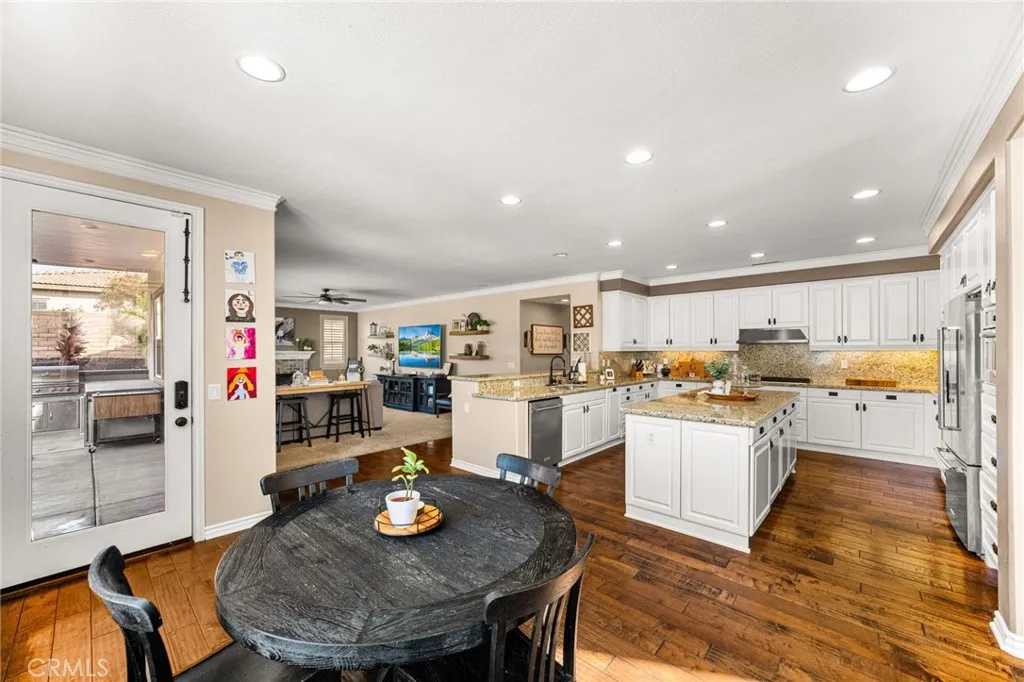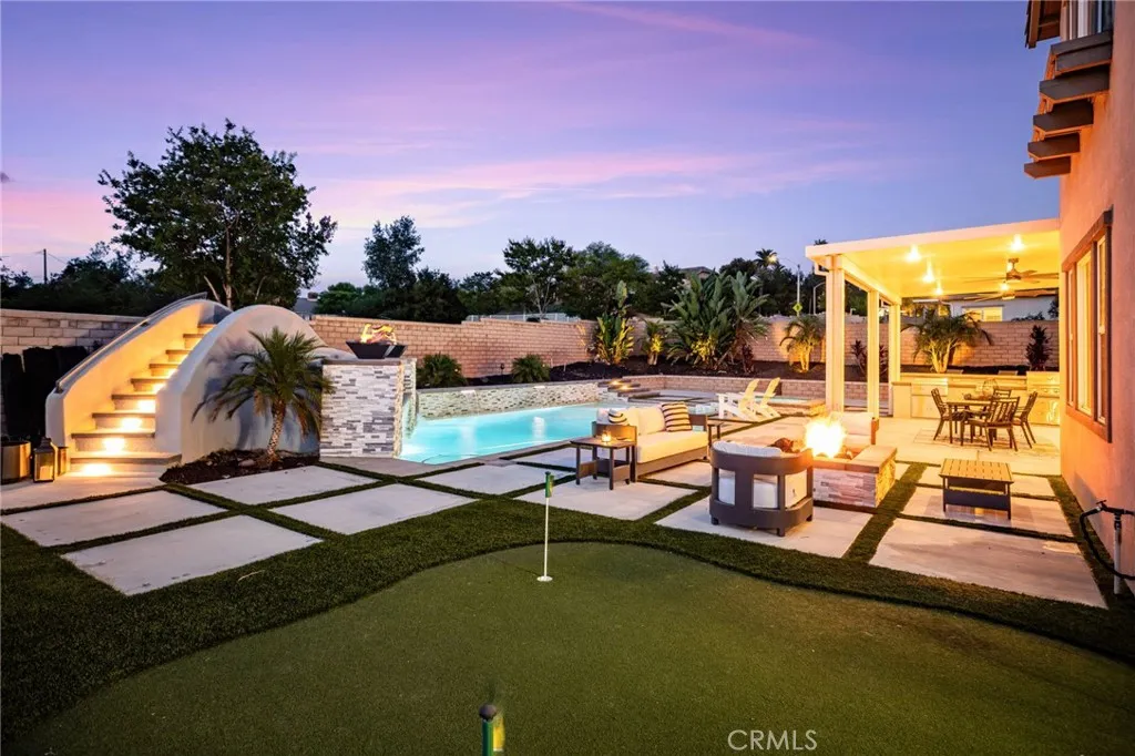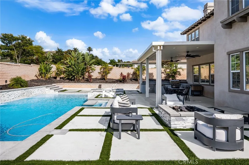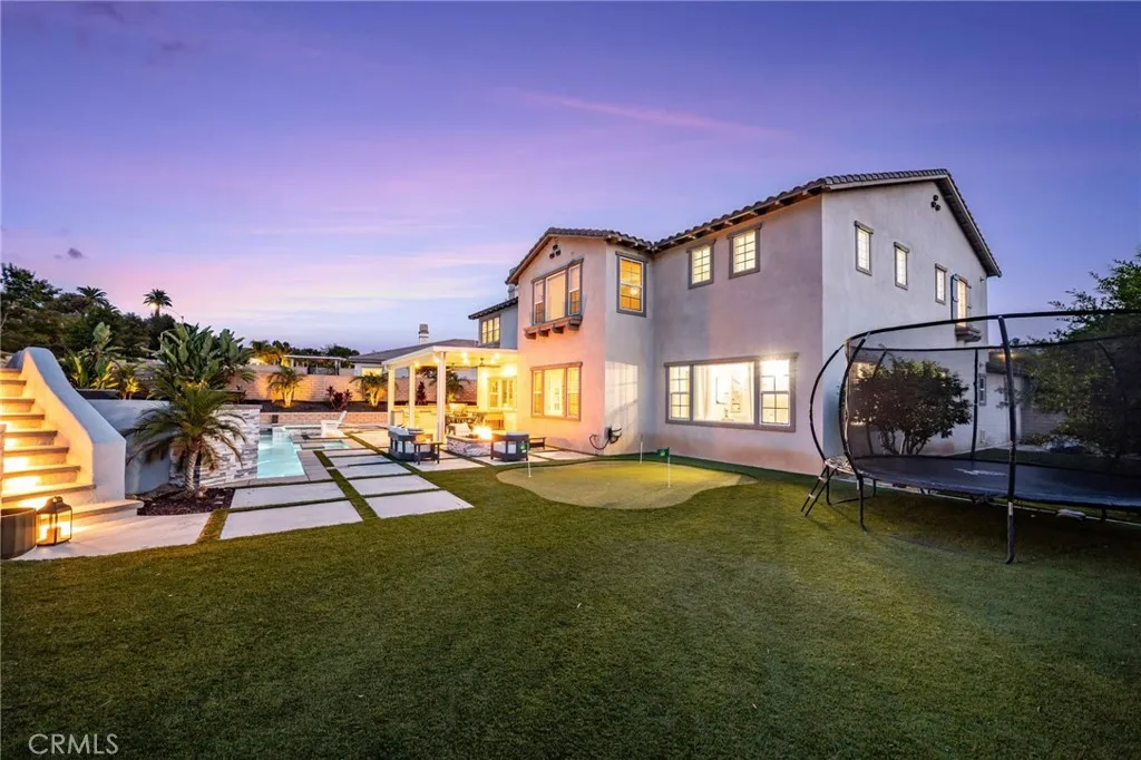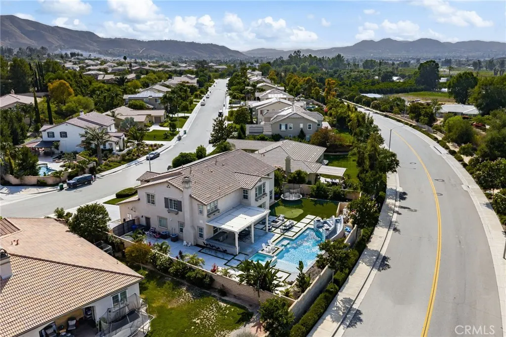 Largest Model in Sierra Heights this Luxury Pool Home with a 4-Car Garage plus Solar. Welcome to this stunning 5 bedroom, 4.5 bathroom home located in the highly desirable Sierra Heights community. Built in 2010 by Standard Pacific Builders, this spacious residence features ebony-finished hardwood floors, soaring cathedral ceilings, and an open-concept layout perfect for entertaining.The gourmet kitchen is equipped with stainless steel appliances, a 5-burner stove, double oven, built-in microwave, dishwasher, and extensive cabinetry throughout. Downstairs includes a large office/den/playroom and a private bedroom with full bath ideal for guests or in-laws. Upstairs, the primary suite offers dual walk-in closets, jacuzzi tub, walk-in shower, dual vanities, and elegant wall moldings. Additional features include a loft (easily converted to a 6th bedroom), 3 more bedrooms, 2 full baths, and an oversized laundry room with utility sink. Enjoy indoor/outdoor living with a fully upgraded backyard featuring a newer pool with waterslide, spa, built-in BBQ, Teppanyaki grill, refrigerator, firepit, covered patio, backyard speakers, and a putting green.Bonus features: 220V in garages, Solar, RV access/parking, 4-car tandem garage, surround sound wiring, low taxes, and convenient access to the 91 Freeway, Tyler Mall, restaurants, Kaiser Hospital, and Metrolink