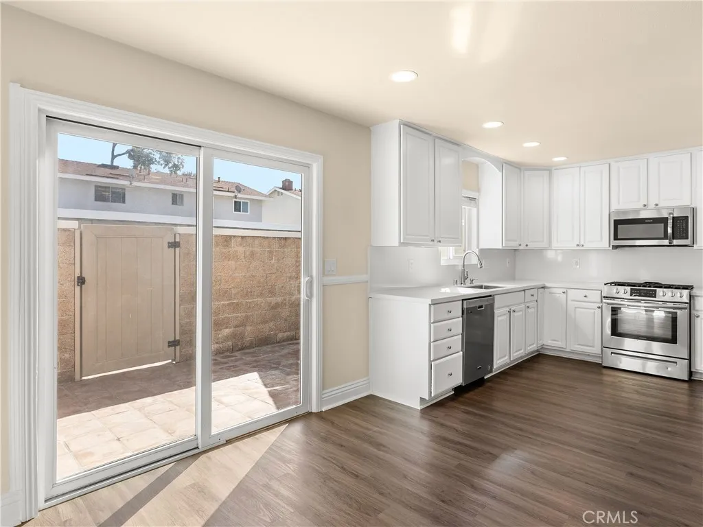 This light-filled two-story townhome has been impeccably maintained and enhanced with designer wood-look laminate flooring, newer baseboards, fresh interior paint, and recessed lighting that gives the living and dining areas a clean, modern feel. The kitchen offers excellent storage and counter space with crisp white cabinetry, quartz counters and backsplash, and newer stainless appliances, and the home includes a washer and dryer for added convenience. All windows and sliding doors have been replaced, the home has been repiped, and the layout is currently arranged with three bedrooms and two-and-a-half baths, including a spacious primary suite with its own private bath. Outdoors, enjoy an exceptionally private patio bordered by block-wall fencing, along with a dedicated carport with storage and an additional community parking permit. The HOA maintains the grounds and provides resort-style amenities including a pool, clubhouse, sport courts, tennis courts, and a playground. Centrally located in Huntington Beach, the home sits about 15 minutes between Main Street HB and the Newport Peninsula, is a short distance to Whole Foods, Target, Stater Bros., CVS, Starbucks, and numerous dining options, and offers bike-lane access toward the beach plus convenient connectivity to the 405 and local schools.