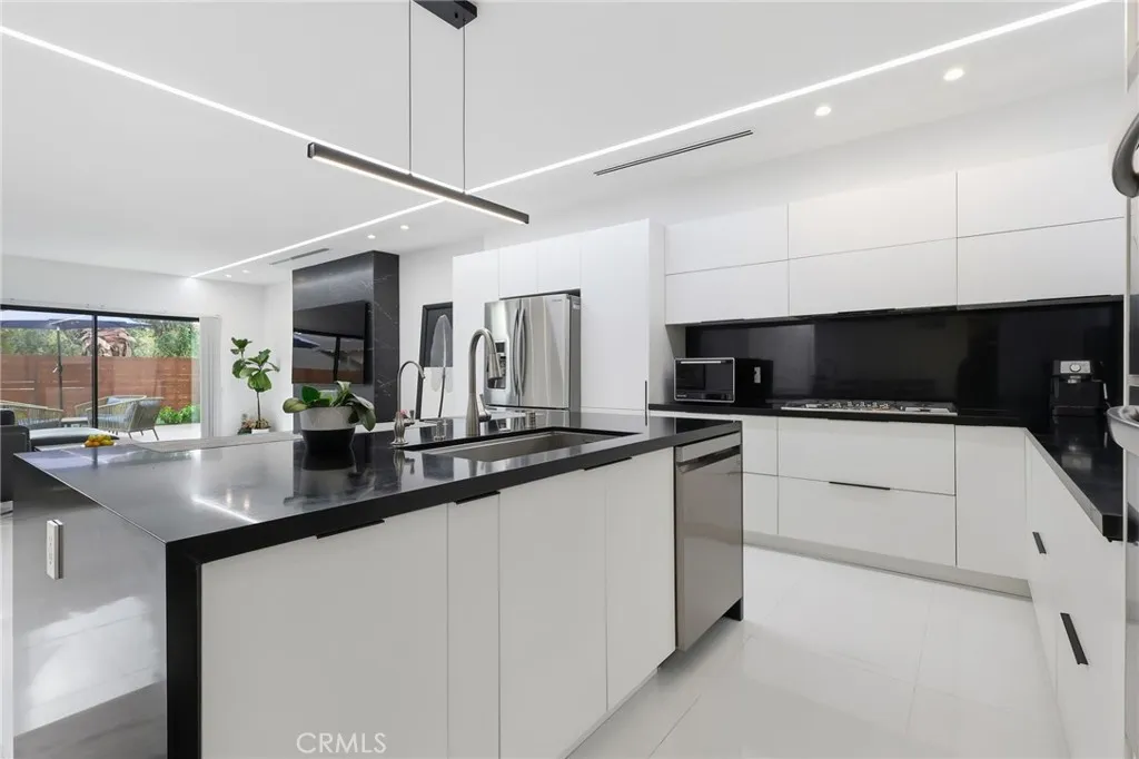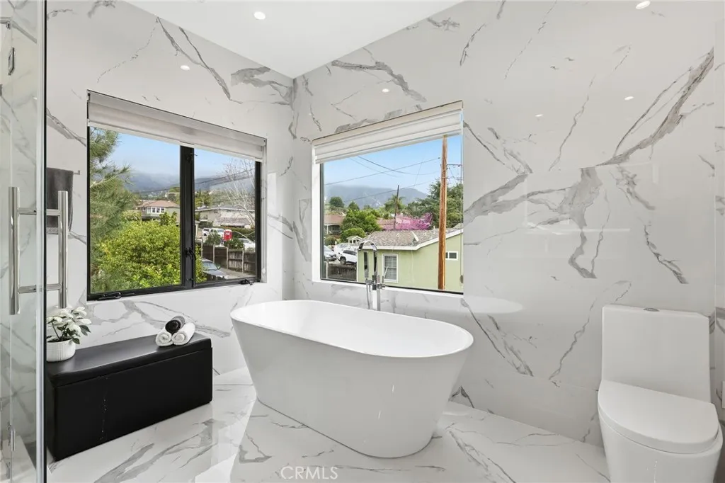 In the heart of Montrosejust moments from charming shops and diningthis architect-designed contemporary home was completely rebuilt from the ground up in 2022 with permits, including all-new framing and a brand-new second story, expanding the home to over 2,408 SF. Natural light fills the open-concept main level with tile flooring, a European-style kitchen featuring a large island, 36" LG cooktop, oven, microwave, and dual pantries (one convertible to a wine rack), and a spacious living area with a modern fireplace and Art wall for TV or Painting. A flexible downstairs room with adjacent bath, works well as an office or guest space. A striking vertical stair window captures mountain views by day and city lights by night, and the flat roof allows for a potential rooftop terrace. Upstairs offers engineered wood floors, a laundry room with backyard views, and three en-suite bedrooms, including a primary suite with mountain views, a spa-like bath, and a large walk-in closet. Features include a Electric vehicle outlet in the attached garage, Bosch heat pump, Korean style floor heating (Ondol) powered by a Navien tankless system, low-maintenance rain gardens, a Trex front deck, and a private backyard with mature landscaping. Parking accommodates up to five cars with a two-car garage, driveway space, and gated side-yard parking. A rare opportunity in one of Montroses most desirable neighborhoods.