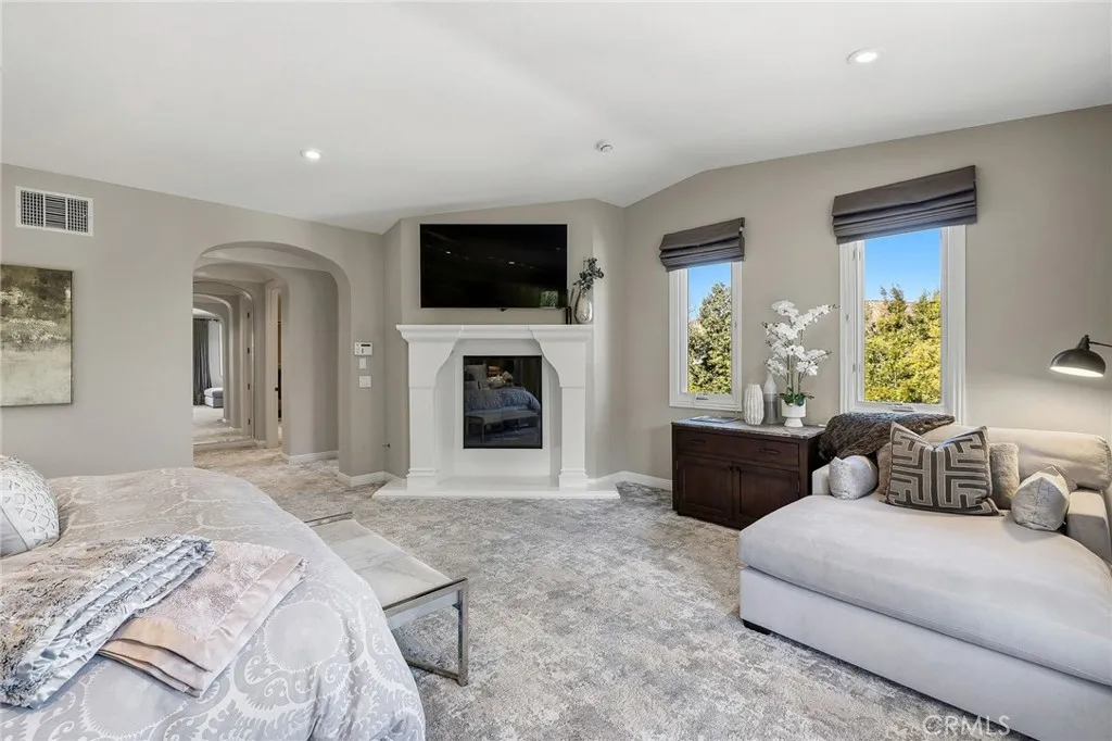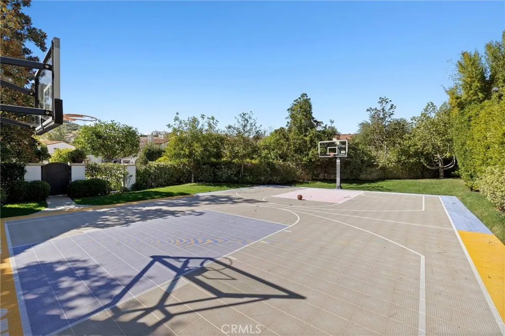 Privately positioned at the end of a quiet cul-de-sac in The Oaks of Calabasas, 3850 Prado De Las Uvas offers over half an acre of resort-style living with approximately 7030 square feet, 5 ensuite bedrooms - 1 down and 4 up, and a flexible modern floor plan seamlessly designed for ease and flow. This Mediterranean estate features warm wood floors, beam ceilings, a dramatic great room with fireplace, and a perfectly located chefs kitchen equipped with premium stainless appliances, double ovens, oversized island, and custom cabinetry. Downstairs the well designed flow is built around access to the desired and vast multiple outdoor spaces. Perfect for large gatherings or intimate nights. The upstairs primary suite complete with separate sitting area, delivers privacy and scale with its own fireplace, covered veranda, and remodeled spa-inspired bath with soaking tub and oversized shower. Upstairs has the sizable laundry room, office/ theater space, and gym overlooking the backyard. Designed for entertaining, the oversized backyard showcases a sparkling pool, waterfall, and spa, built-in BBQ with seating, covered patio lounge with fans and heaters, full-size sport court, and mature landscaping for exceptional privacy. Residents enjoy exclusive access to The Oaks 24-hour guard-gated security, clubhouse, tennis and pickleball courts, fitness center, basketball court, and resort-style pool. Located just minutes from Malibu The Commons at Calabasas and within the award-winning Las Virgenes School District. Luxury, privacy, and location all in one of Calabasas most sought-after com