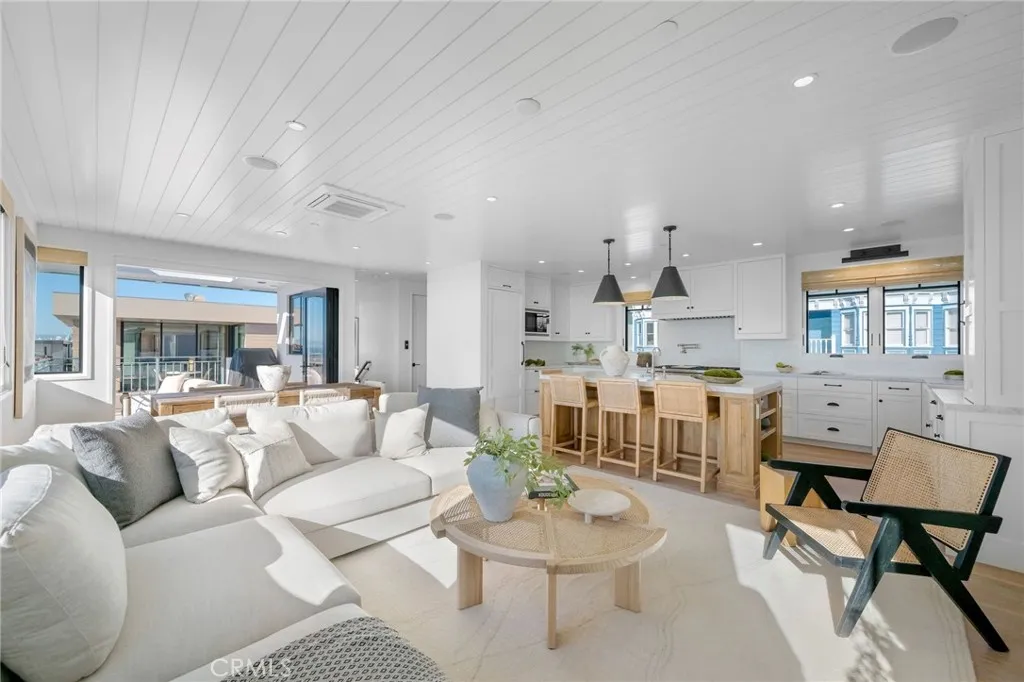 "Sunsets, ocean air, and spaces that flex with your lifethis architecturally refined coastal home is designed to live the way Manhattan Beach buyers actually want to live. Set on a southwest corner just moments from the Strand, the home unfolds across four thoughtfully designed levels, each offering its own moodfrom relaxed entertaining to quiet retreat. Wide-plank French oak floors, warm wood paneling, and metal-framed windows create a calm, elevated backdrop that feels both modern and timeless. The top level is where life naturally gathers. Walls of glass and bi-fold doors open to a panoramic ocean-view deckperfect for sunset dinners, weekend barbecues, and evenings that stretch just a little longer with a glass of wine in hand. A chefs kitchen anchors the space, outfitted with Sub-Zero and Wolf appliances, slab marble counters, and a breakfast bar that keeps everyone connected to the view. Below, the home reveals its most unexpected feature: a lower-level lounge that feels nothing like a basement. By excavating the west side yard, the space is flooded with natural light and generous proportions. Designed as a sophisticated entertainment retreat, it features a custom bar, temperature-controlled wine cellar, and lounge seatingyet easily transforms into a private guest suite or secondary living space, complete with a Murphy bed, bath, laundry, and elevator access. The bedroom levels offer privacy and flexibility, including a serene primary suite with its own ocean-view deck, spa-like marble bath, and adjacent room that can serve as an office, study, or nursery. A separate-e