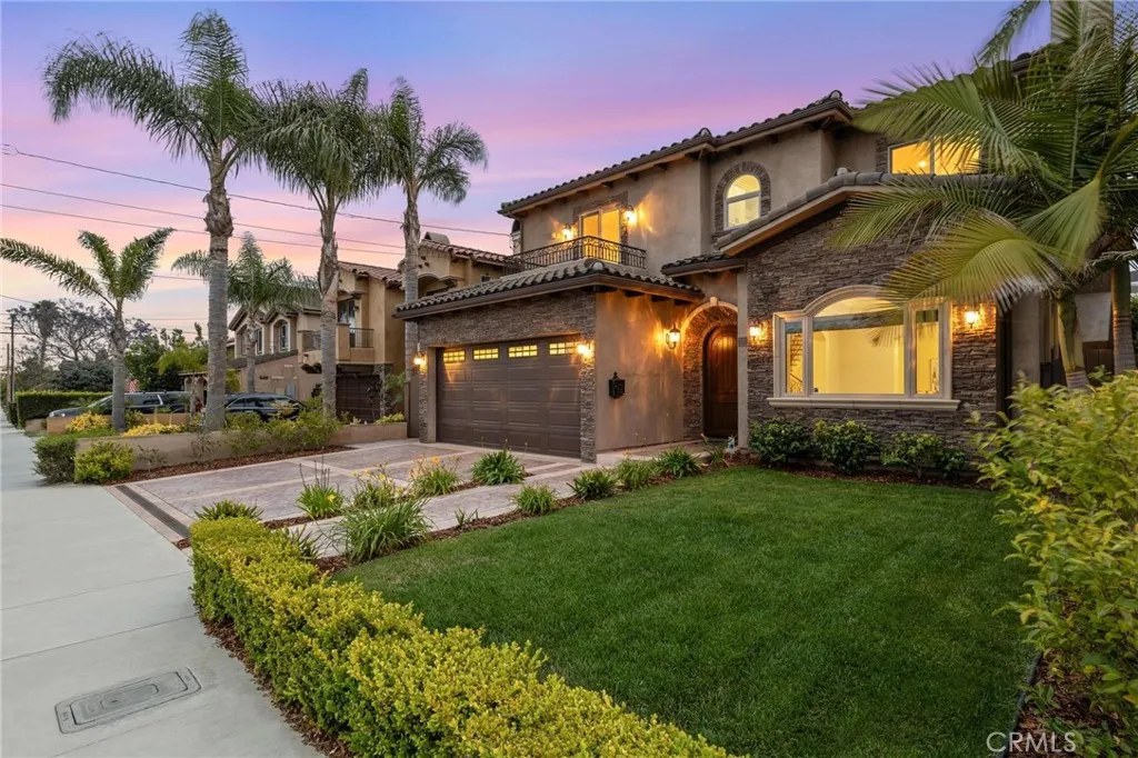 *Offer Deadline is Wednesday (2/25) at 5pm*. Welcome to 2012 Robinson Street, a stunning Mediterranean home built in 2011, situated in the highly desirable North Redondo Beach neighborhood. This remarkable single-family residence is set on a 5,193 square foot lot, offering both privacy and a spacious, south-facing backyard. With 3,406 square feet of luxurious living space, the home is adorned with exquisite finishes, including crown molding, high ceilings and designer fixtures. The main level features a family room with coffered ceilings, a formal dining room, an office/bedroom, and a living room with a cozy fireplace that seamlessly transitions into the gourmet kitchen. Both the family room and kitchen have sliding glass doors that open to the back yard allowing for light to stream inside. The chef's kitchen is a delight, equipped with a Thermador range, cabinetry, ample storage, large quartz covered island and a huge kitchen nook for casual dining. Hardwood floors in the open living spaces add warmth and sophistication. Outside, the private backyard oasis is perfect for relaxation, with turf and mature landscaping creating a serene retreat. Atop the beautiful curved staircase with custom iron railing, you'll find four spacious bedrooms, each with high ceilings and abundant natural light. The oversized primary suite overlooks the backyard and features Milgard sliders that open to a balcony, an inviting fireplace, and a luxurious en-suite bathroom with sizable shower and a separate soaking tub. Each bedroom is strategically positioned for privacy, with a spacious laundry ro