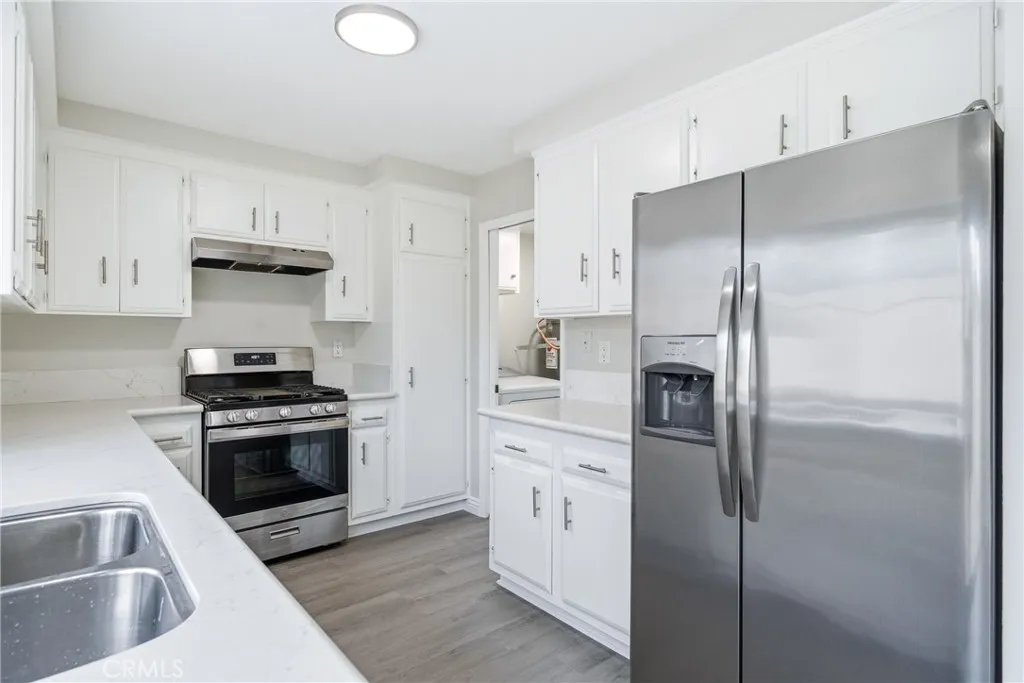 Welcome to your refreshed two-story home nestled within the desirable Garden Walk community in the heart of Garden Grove, offering comfort, convenience, and easy living in a location that truly delivers! Featuring 3 spacious bedrooms and 2.5 bathrooms, this move-in ready residence is perfect for a small family or anyone looking for extra space and functionality. Entering the home, you are greeted by a bright and inviting living area showcasing fresh interior paint, new laminate flooring throughout, and an open layout filled with natural lightperfect for everyday living and entertaining. Just beyond the living space is a kitchen with ample cabinetry and countertop space, nice appliances, and a conveniently located laundry room, making daily routines effortless and efficient. Off the kitchen is a nicely sized private outdoor space, perfect for relaxing, entertaining friends, or enjoying a morning cup of coffee. Downstairs also includes a guest powder room, ideal for visitors and everyday convenience. As you make your way upstairs, youll find three well-sized bedrooms, all featuring new flooring, updated light fixtures, and a clean, modern feel. The primary suite offers a comfortable retreat complete with its own en-suite bathroom featuring a shower and updated finishes. The home also includes a two-car detached garage, offering parking and storage space. Additional highlights include new interior paint, light fixtures, flooring throughout, resurfaced hallway shower, central heating and air conditioning, a Nest thermostat, dual-pane windows throughout, a newer water heater, up