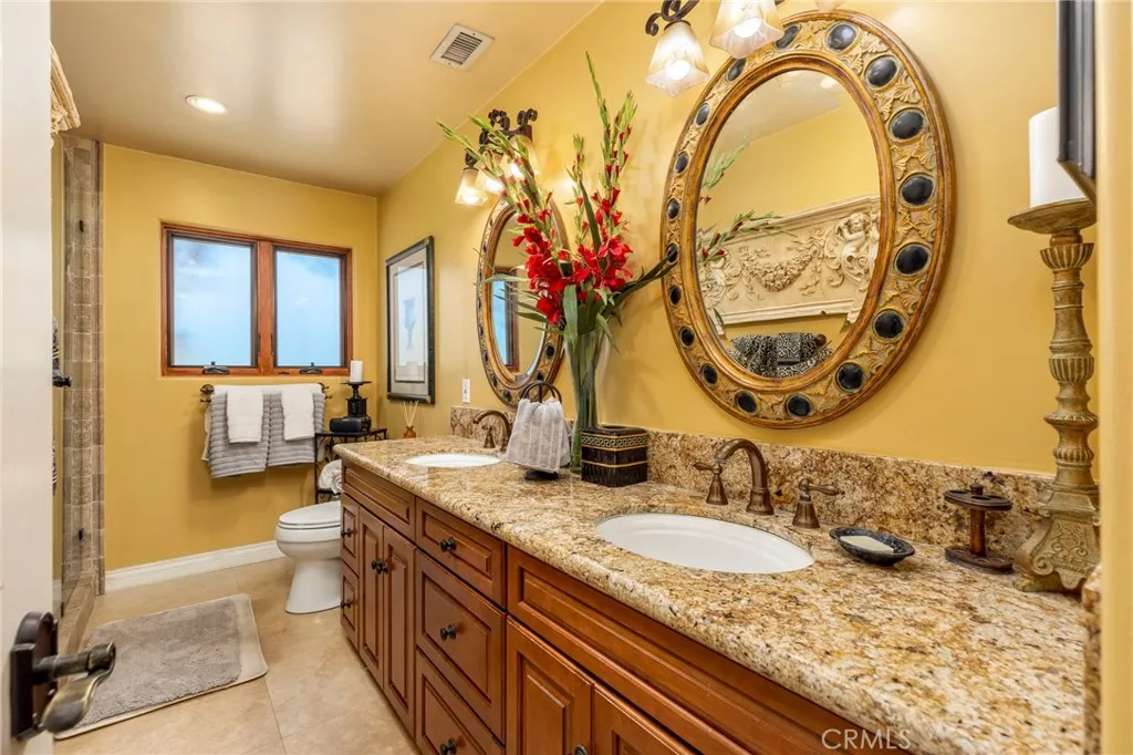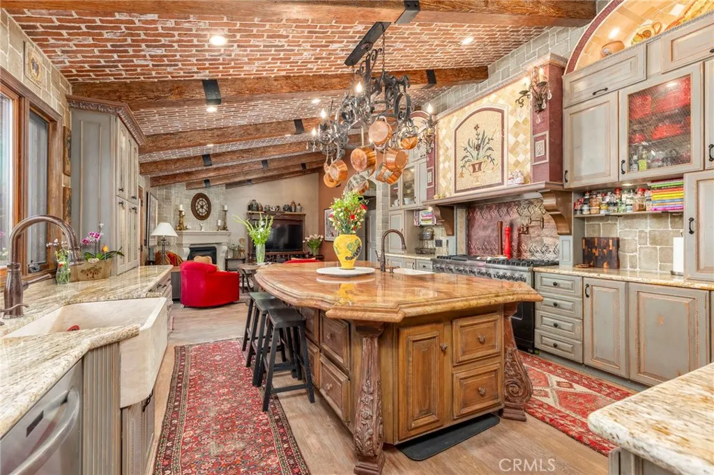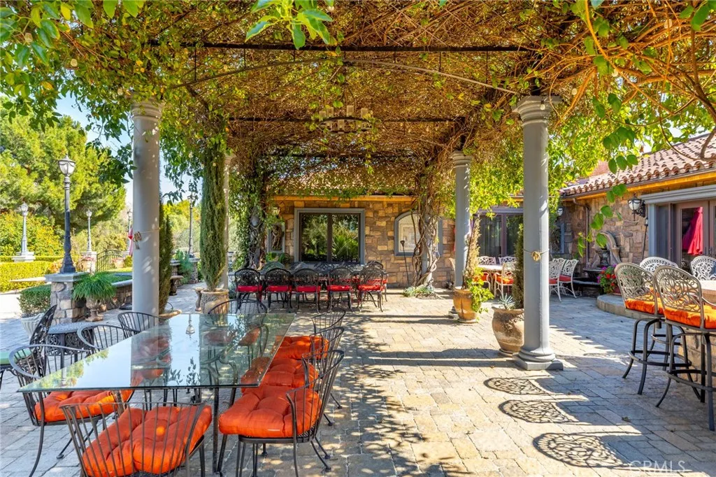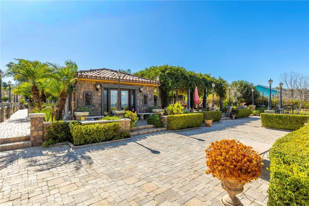 Experience the pinnacle of quiet country living in this one-of-a-kind custom estate, perfectly situated on 2.38 sprawling acres within the prestigious Lake Mathews Estates. Beyond the grand custom entry door and striking copper ceilings, the heart of this 4-bedroom, 2.5-bathroom home is a world-class gourmet kitchen designed for the serious chef. This culinary sanctuary features a massive marble island, a 60-inch Viking range, Sub-Zero refrigerator, three ovens, a warming drawer, and a dedicated wine cooler. Functional luxury defines the space, which includes three kitchen sinksincluding artisan travertineand beautiful seasoned wood flooring that flows throughout the residence. Stately stone columns and custom architectural details transition you seamlessly from the interior to an outdoor oasis built for the ultimate entertainer. Commanding breathtaking, unobstructed views of Lake Mathews, the backyard is anchored by a sparkling pool and spa that overlook the water, complemented by a massive covered terrace and a professional-grade outdoor kitchen equipped with an Eagle BBQ. The homes exterior is a masterclass in craftsmanship, featuring intricate custom stonework, elegant balusters, and expansive designer hardscape with premium pavers. Beyond the patio, the property transforms into a lush private sanctuary and working orchard, home to 100 olive trees alongside a bounty of apricot, plum, peach, orange, tangerine, almond, and grapefruit trees. Offering the rare freedom of a community with no HOA, this estate includes 40 solar panels (leased) and two large storage sheds. 1426