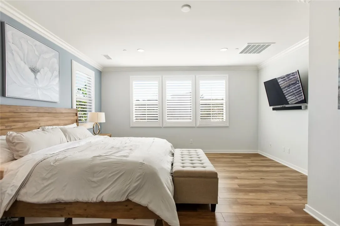 Premium corner end-unit in Baker Ranch with no front neighbor, abundant natural light, and serene views of greenery and a tot lot. This 3-bedroom, 2.5-bath home offers 1,655 sqft of modern living space with a bright, open floor plan. Step inside to discover a home filled with thoughtful upgrades: porcelain tile floors on the main level, wood laminate upstairs, recessed lighting, crown molding, and plantation shutters throughout. The Chef's kitchen features stainless steel GE appliances, quartz countertops, soft-close cabinetry, and custom pull-out drawers. Upstairs, the spacious primary suite is a peaceful retreat, complete with a walk-in closet with built ins, glass shower, dual vanities, and separate toilet room. Secondary bedrooms share a remodeled Jack-and-Jill bath with custom lighting, while a separate laundry room with washer and dryer adds everyday convenience. Practical touches abound, including dual-zone HVAC with Nest thermostats, a newer water heater, a saltwater softener, and an epoxy-floored garage with top storage racks. Outside, the corner patio invites relaxation, gardening, or cozy evenings around a fire pit. Life at Baker Ranch means more than just a home. Residents enjoy exceptional community amenities, including pools and spas, clubhouses, parks, playgrounds, sport courts, open fields, and scenic trails surrounded by open space and foothill views. Conveniently located near freeways, shopping, dining, entertainment, and top-rated schools. Low HOA dues and no Mello-Roos. 47 Finch is the perfect place to call home - blending modern comfort, thoughtful upgr