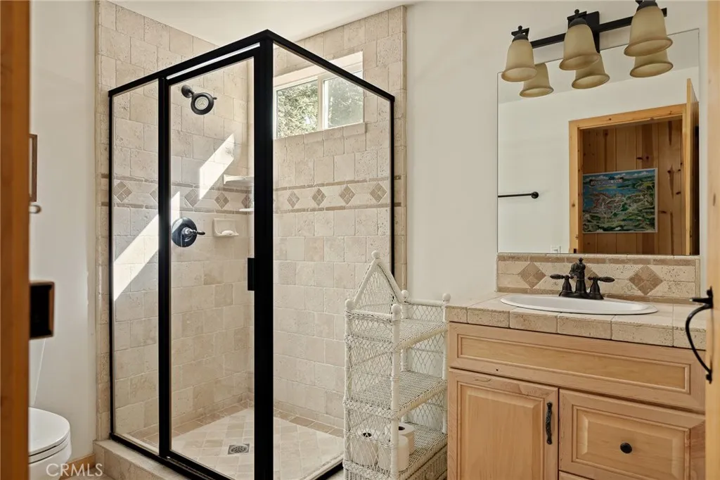 Tucked among towering pines and cedars in the sought-after Crest Estates, this beloved vintage cabin has been a place of memories for over 65 years and its easy to see why. Set on three-quarters of an acre of gently sloping, forested land, the property offers a rare sense of privacy, tranquility, and timeless mountain charm. The approach is part of the magic: a long, easy driveway welcomes you in, and a gradual staircase leads to the front door, building anticipation as the trees surround you. Inside, the spacious living room and kitchen are wrapped in windows, bathing the home in soft natural light and bringing the outdoors in. A heat-efficient wood-burning stove anchors the living room, creating the perfect setting for snowy evenings, quiet mornings with coffee, or gatherings with family and friends. Step out onto the expansive back deck and feel completely immersed in the forestwhere the scent of cedar fills the air and sound of birdsong and wind through the pines envelops you. Its a space made for summer dinners, stargazing, and slow weekends away from the noise of everyday life. The main level offers two inviting bedrooms and a three-quarter bath, while upstairs, a charming loft and third bedroom provide additional room for guests, creative space, or a peaceful retreat. Downstairs, a cozy family room and another three-quarter bath create flexibility for movie nights or extended stays. Thoughtfully updated over the yearswith HardieBacker siding, dual-pane windows, a replaced roof, tankless water heater, plumbing updates, septic tank, and a wood-burning stovethe cabin bl