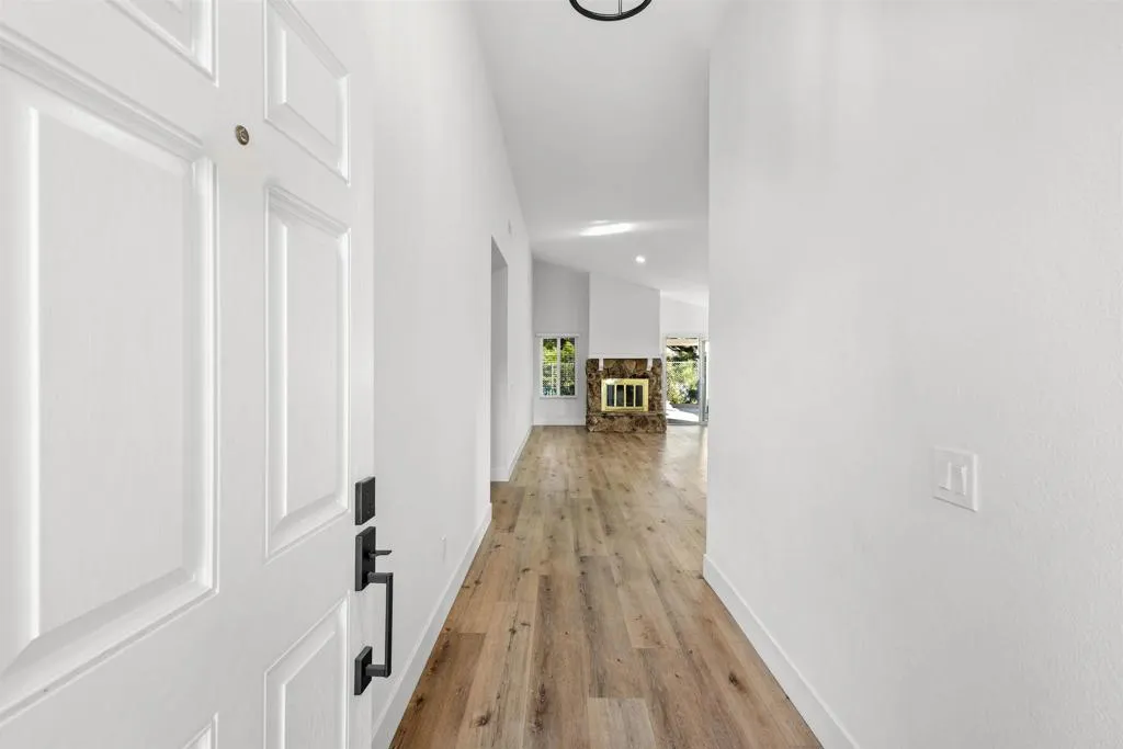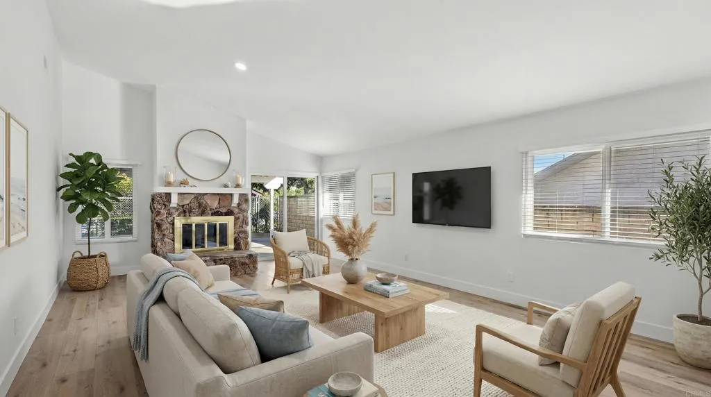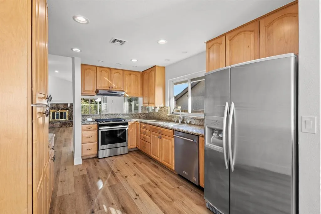 Welcome to this beautifully maintained single-story pool and spa home located in the heart of Valencia. Offering approximately 1,624 sq ft with 4 bedrooms and 2 bathrooms, this move-in ready residence combines comfort, functionality, and an exceptional indoor-outdoor lifestyle. Step inside to an open and inviting floor plan featuring updated flooring, smooth ceilings, recessed lighting, and abundant natural light throughout. The spacious living areas flow seamlessly into the kitchen and dining space, creating an ideal layout for everyday living and entertaining. The kitchen offers generous cabinet storage, granite countertops, stainless steel appliances, and a convenient breakfast bar overlooking the main living area. Both bathrooms have been refreshed with updated vanities and fixtures. All four bedrooms are fully functional, with laundry conveniently located in the garage. The backyard is designed for year-round enjoyment, featuring a private pool and spa, covered patio for shaded outdoor living, hillside and mountain views, and multiple areas for relaxing or entertaining. The side yard includes gated access with additional space for storage or recreational equipment. Additional improvements include a newer HVAC system, dual-pane windows and sliders, newer pool equipment, and extensive interior updates completed in recent years. The oversized driveway provides additional parking along with a two-car garage. No HOA and No Mello-Roos. Conveniently located near parks, shopping, dining, commuter access. A rare opportunity to own a clean, single-story Valencia pool home offeri