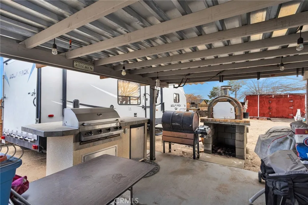 Welcome to this beautifully situated home in Hesperia offering the perfect blend of space, convenience, and outdoor living. Ideally located near major freeways, shopping, schools, and dining, this property delivers both accessibility and comfort. Featuring three spacious bedrooms and two bathrooms, this home sits on nearly half an acre, providing room to grow, entertain, and create. Don't miss the wood burning stove to keep your home warm and your heating costs low during the chilly desert nights. Some of the best features of this property can be found in the backyard a private, fully fenced yard designed for unforgettable gatherings. Enjoy a large covered patio, built-in BBQ, and authentic pizza oven, all ready for hosting family and friends year-round. With endless possibilities, this expansive outdoor space is perfect for entertaining, relaxing, or customizing to fit your vision. Additional features include a chicken coop, animal pen, multiple storage sheds, and a concrete slab with covered RV parking offering flexibility for hobbyists, animal lovers, and outdoor enthusiasts alike. With nearly half an acre of usable land, this property combines function, freedom, and opportunity giving you the space to truly bring your dreams to life.