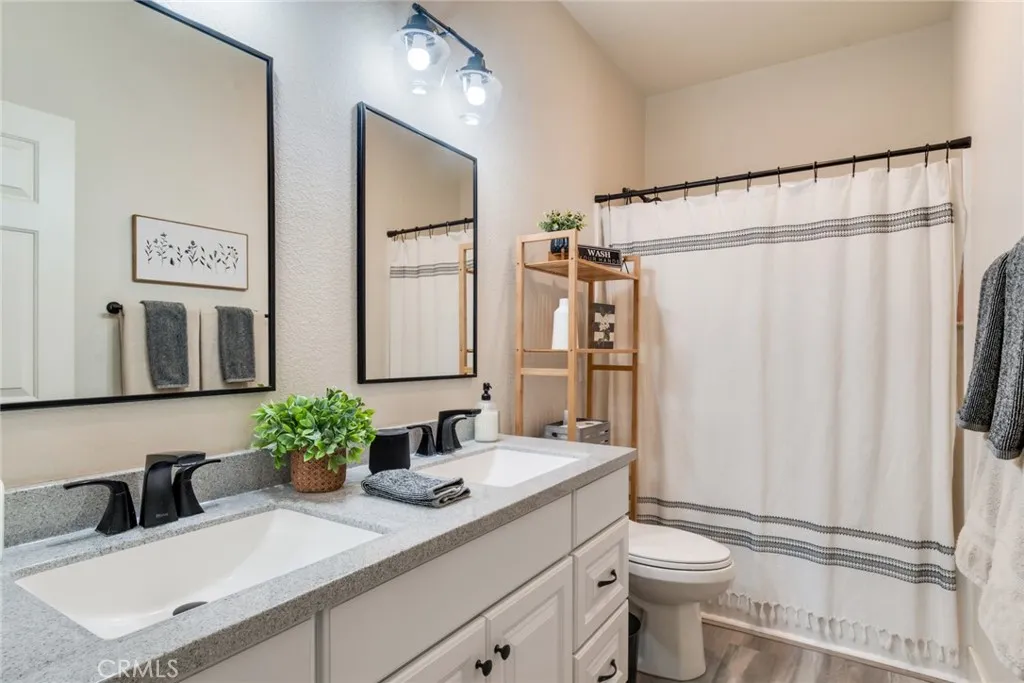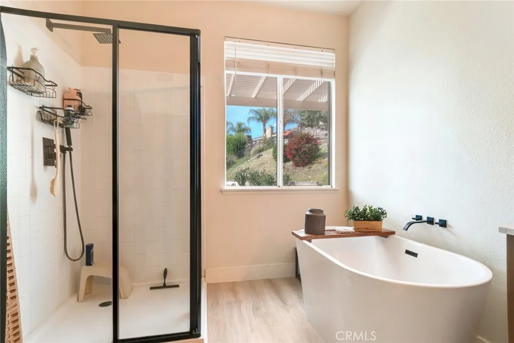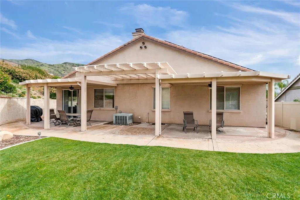 Welcome to this beautifully upgraded single-story home in the desirable neighborhood of Highland, offering 4 bedrooms and 2.5 bathrooms on a spacious, private lot with scenic hillside views. This turnkey residence features an open-concept layout with high ceilings, plank flooring, recessed lighting, and a cozy fireplace anchoring the main living space. The upgraded kitchen showcases white shaker cabinetry, quartz countertops, subway tile backsplash, stainless steel appliances, a large center island, walk-in pantry, and a dedicated coffee bar, all flowing seamlessly into the dining area with direct backyard accessperfect for entertaining. The spacious primary suite offers vaulted ceilings and a spa-inspired en suite bath complete with a freestanding soaking tub, dual vanities, and a custom glass walk-in shower. Three additional bedrooms provide flexibility for family, guests, or home office space, complemented by updated secondary bathrooms. Enjoy indoor laundry, an attached three-car tandem garage, and thoughtful modern finishes throughout. Step outside to a beautifully landscaped backyard oasis with an expansive lawn, terraced greenery, covered patio, and multiple seating areas ideal for relaxing or hosting gatherings. With stunning curb appeal, stylish upgrades, and a functional single-story design, this home offers the perfect blend of comfort, elegance, and California indoor-outdoor living.