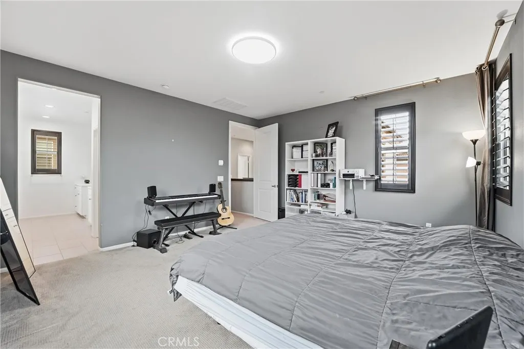 Welcome to Terrassa, an exclusive gated community in the heart of Corona. Built in 2018, this beautifully maintained Plan 2 of Terrassa Court combines modern comfort with timeless Santa Barbarainspired architecture. As you pass through the private gates, youre welcomed into an open and airy floor plan featuring 3 bedrooms, 2.5 bathrooms, and approximately 1,807 square feet of thoughtfully designed living space. The main level is bright and inviting, with seamless laminate flooring flowing through the living and dining areas into a kitchen with granite countertops, white raised-panel cabinetry with satin nickel hardware, stainless steel appliances, and a generous center island perfect for gathering family and friends. Custom shades and plantation shutters throughout add style and privacy, while high ceilings enhance the sense of space and openness. Upstairs, the private primary suite boasts plush carpeting, soaring ceilings, and a luxurious en-suite bath with a soaking tub, separate shower, dual vanities, and a large walk-in closet. Two additional bedrooms share a modern hallway bath, and the conveniently located upstairs laundry adds everyday ease. Step outside to a finished, low-maintenance backyard ideal for relaxing or entertaining, while the two-car garage offers direct interior access, additional storage, and a tankless water heater. Energy-efficient features include fully owned and paid solar panels, radiant barrier roofing, enhanced exterior insulation, and an insulated steel garage door. Located near top-rated schools and close to shopping, dining, and entertainment
