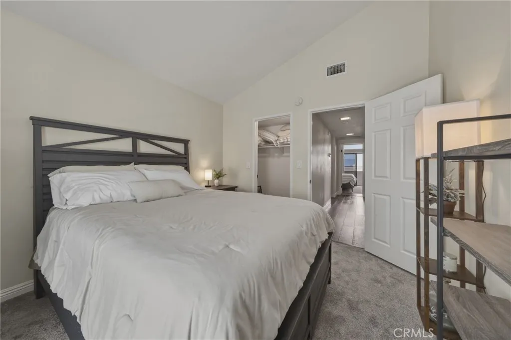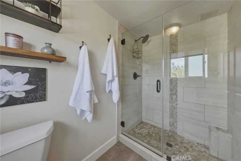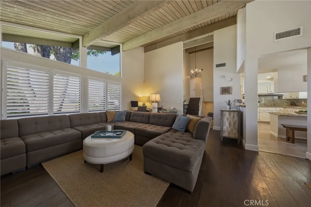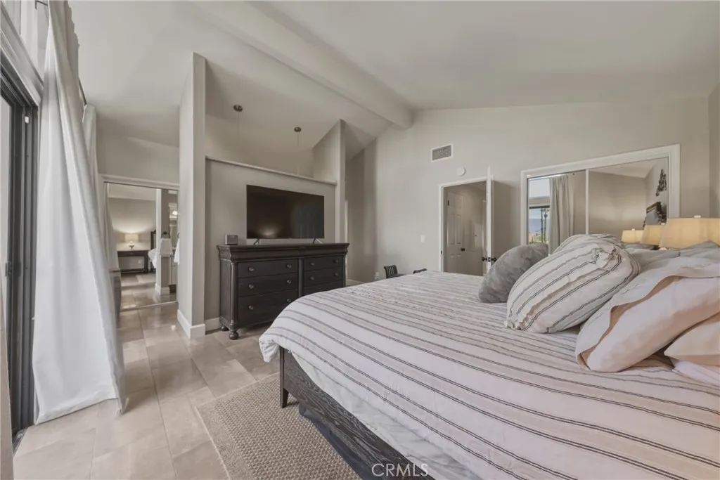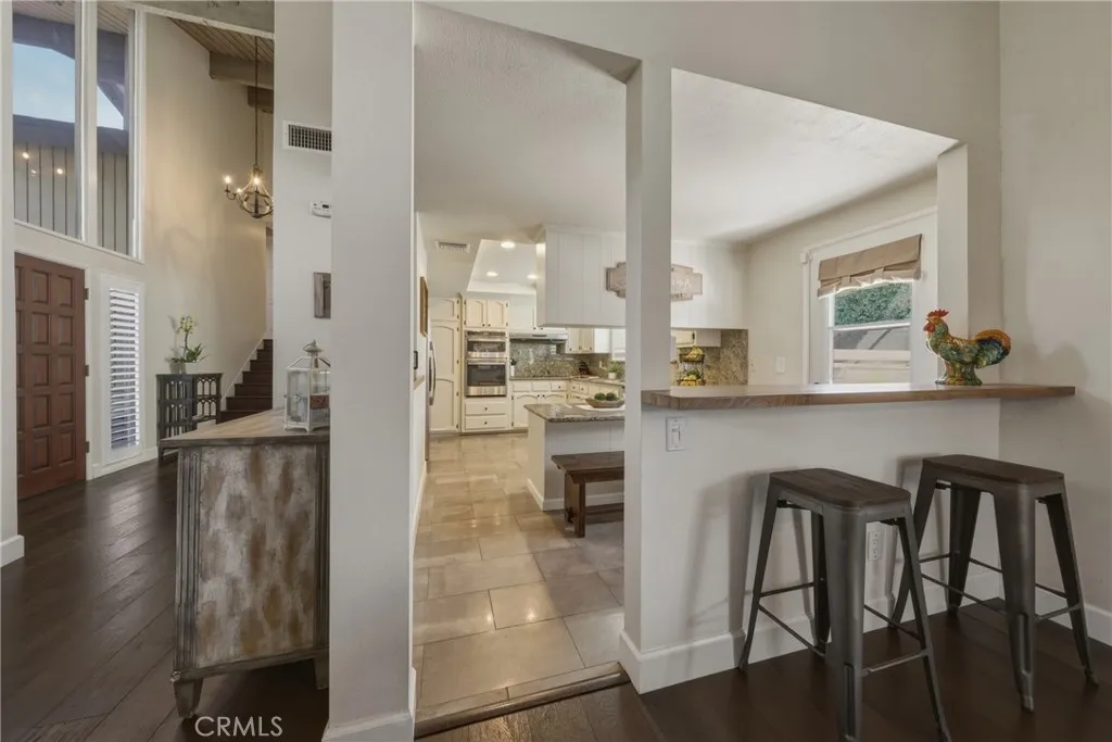 Stunning mid century modern home on a quiet cul de sac in highly desirable South Redlands. Situated on a generous 9,020 square foot lot, this 4 bedroom, 3 full bath residence offers 2,713 square feet of thoughtfully designed living space with sweeping mountain views and abundant natural light. From the moment you arrive, the mature tree lined street and curb appeal set the tone. Inside, dramatic beamed and cathedral ceilings, expansive picture windows, and an open floorplan create a bright, inviting atmosphere. The main level features a grand living room with a striking rock fireplace, a large foyer framed by oversized windows, and direct access to your backyard oasis. The kitchen offers granite counters, generous cabinetry, breakfast bar seating next to a convenient door leading to the pool and outdoor entertaining area. Upstairs you will find three spacious bedrooms, including a primary suite with private sitting balcony, two closets, and an en suite bath with dual sinks, soaking tub, and separate shower. The additional bedrooms are light filled and generously sized. A laundry chute adds charm and functionality. The lower level offers exceptional flexibility with a private oversized bedroom ideal as a second primary suite or guest quarters. It includes a large closet, kitchenette with cabinetry, full bathroom, and a private entrance to the covered patio area and backyard entertainment space, perfect for multi generational living or extended stays. The backyard was reimagined with a beautifully designed pool built in 2018, surrounded by lush landscaping and ample patio spa