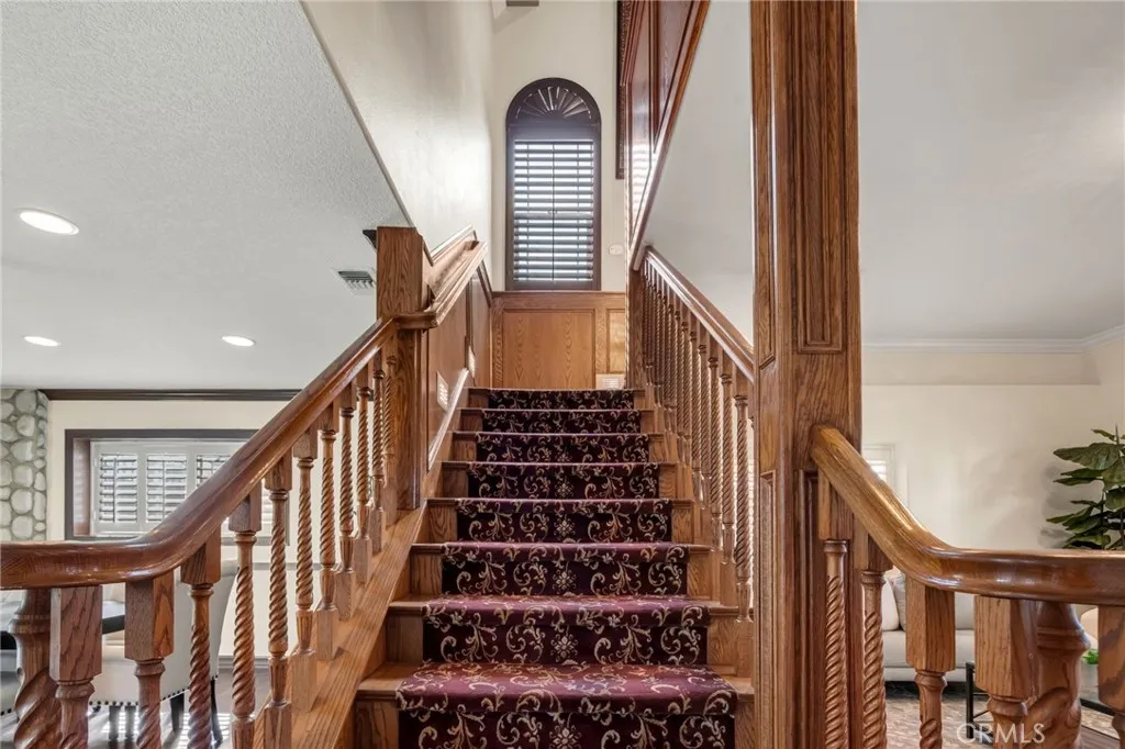 Welcome to 7704 Lotus Circle, Buena Park a rare multi-generational estate in the highly sought after Flower Tract. Situated on a quiet cul-de-sac, this expansive 6-bedroom, 4-bathroom home offers approximately 3,627 square feet of thoughtfully designed living space created for todays evolving family needs. The main level features an open concept kitchen and family room that naturally serves as the heart of the home, with granite countertops, generous prep space, luxury vinyl plank flooring, crown molding, plantation shutters, decorative windows, and double-pane windows throughout. This meticulously maintained non-smoking residence includes three main level bedrooms, including a primary suite ideal for single level living. Upstairs, the home truly distinguishes itself with an approximately 1,000-square-foot private grand suite accessed by secure elevator service plus a separate exterior balcony entrance, offering rare independent living flexibility, ideal for multi-generational households, extended family, guests, or added accessibility. This remarkable retreat includes a kitchenette, spa-style bathroom, oversized walk-in closet with stackable washer and dryer, and a quiet office nook. The upper level also offers two additional spacious bedrooms and a vaulted great room perfect as a secondary family room, media room, study area, or playroom. Three separate laundry areas provide exceptional convenience for larger households. Step outside to a custom backyard retreat featuring a sparkling pool, OVERSIZED spa, waterfalls, and stone decking designed for warm family gatherings.