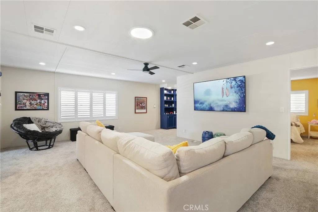 Simply Gorgeous Remodeled Triple-Wide in Twin Oaks (55+ Community) Absolutely turn-key, beautifully remodeled 2-bedroom, 2-bath triple-wide offering approximately 1,790 sq ft with a spacious open floor plan and abundant natural light. Move-in ready with extensive upgrades throughout. Beautiful bright colors enhance the home, creating a warm and inviting atmosphere. Lovely updated kitchen featuring abundant cabinet and counter space, plus a convenient breakfast bar open to the family room ideal for everyday living and entertaining. Large primary bedroom suite with a spacious bathroom and vanity area. Bathrooms include new toilets (including a premium Brondell toilet with bidet in the primary bath), new faucets, and new shower heads. Additional upgrades include recessed lighting throughout, New ceiling fans, motorized and manual shades, interior wooden shutters, fresh interior and exterior paint, outdoor motion lighting, refreshed landscaping, and a redesigned front porch with elegant tile work and handcrafted cedar railing & sunshades. Large open living room with dining area. Separate family room with built-in desk and shelving, perfect for a home office, hobby space, or reading area. Separate laundry room with direct access to the carport. Ramp provides convenient entry, and the extended carport/driveway offers additional parking flexibility. 2 large Sheds for all your belongings. Twin Oaks is a highly desirable 55+ community in La Verne, conveniently located near shopping, dining, public transportation, freeways, hospitals, and airports. Residents enjoy outstanding amenit