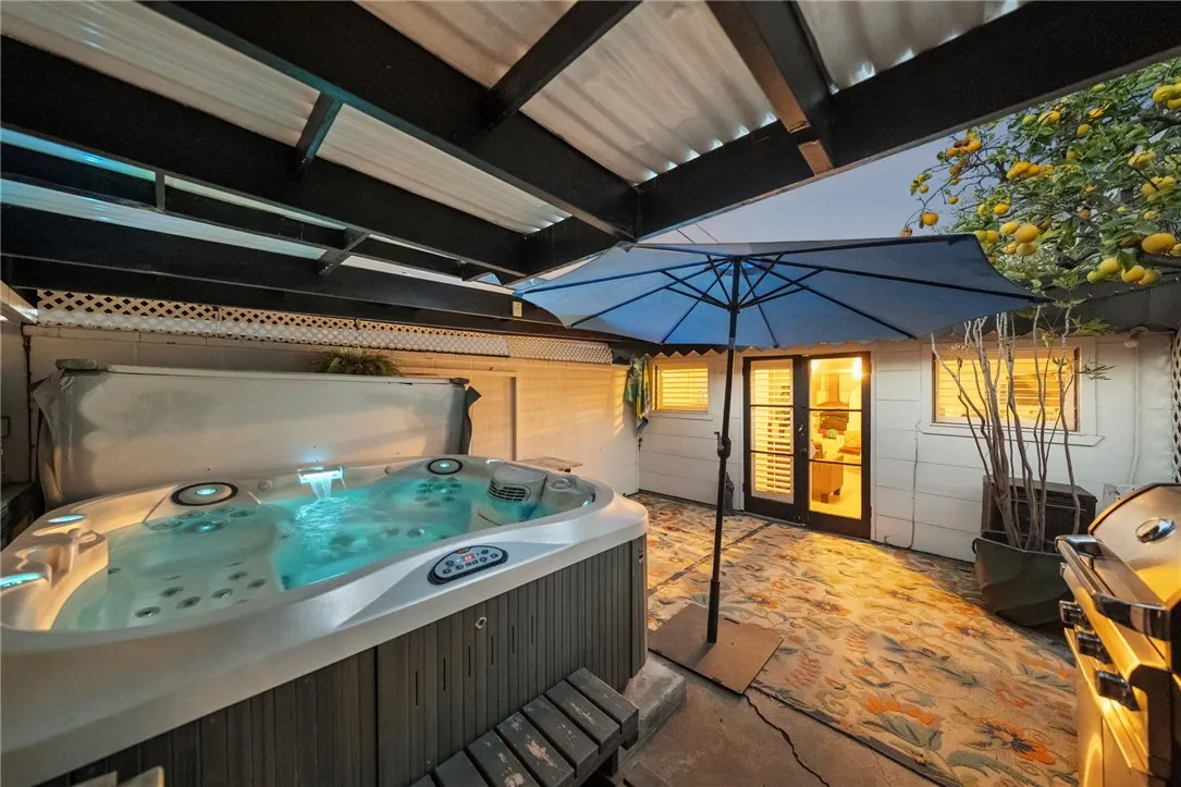 Located in the highly desirable Upper Vista Del Oro neighborhood of San Pedro, this stunning Spanish bungalow blends timeless 1920s charm with modern upgrades and an unmistakable Old Hollywood feel. From the nostalgic character of the front exterior to the private backyard retreat, this home offers a rare combination of warmth, style, and functionality. Featuring 3 bedrooms, 2 bathrooms, and approximately 1,320 square feet of living space, the home showcases original mahogany hardwood floors, crystal doorknobs, and new interior paint throughout. Step into a cozy living room that flows seamlessly into the dining area, creating an inviting space for everyday living and entertaining. The remodeled kitchen and breakfast nook is beautifully appointed with granite countertops, new cabinetry, a modern backsplash, new lighting and upgraded quality appliances including a Viking range, LG refrigerator, and Kenmore dishwasher. The bathrooms have been thoughtfully updated, including a spa-inspired bathroom designed for relaxation. Recent upgrades include a new roof (2024), Anderson windows, updated plumbing (early 2000s), new bathroom lighting, mini-split systems for efficient heating and cooling, solar lease for energy efficiency, a new front retaining wall, and xeriscape landscaping in the rear. Step outside to your private backyard retreat via a mudroom featuring a covered patio with jacuzzi, ambient lighting, and TV perfect for relaxing or hosting gatherings. Enjoy a chicken coop, mature fruit trees (orange and lemon), private laundry room, and additional basement storage. A detac