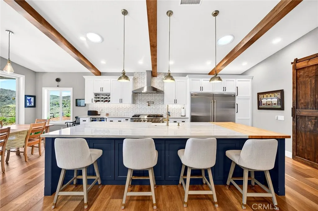 VIEWS! PAID OFF SOLAR!! CASITA!!! Welcome to an extraordinary La Cresta estate where breathtaking mountain views, miles of horse trails, and the peaceful serenity of rural living create the ultimate Southern California lifestyle. This stunning property features an open-concept main residence 2470 SqFt with 3 bedrooms and 2.5 baths that impresses from the moment you arrive, greeted by gorgeous knotty alder solid wood double doors and rich engineered hardwood floors that flow throughout. The chef's kitchen is nothing short of spectacular, featuring a Thor 6-burner gas range with griddle and pot filler, built-in Electrolux refrigerator and freezer, stainless steel range hood, wine fridge, and an incredible butler's pantry with upper and lower cabinetry, ample counter space, stunning views, and beautiful lighting. The kitchen flows seamlessly into the dining area and an oversized family room boasting a cozy fireplace, soaring open beam ceilings, and panoramic views you will never tire of. A dedicated mudroom and laundry room add everyday convenience, while smart home technology, a Quiet Cool fan, newer heat pump, and updated HVAC system ensure comfort and efficiency year-round. Step outside to your private backyard paradise featuring a beautiful pool and spa, built-in BBQ, and those jaw-dropping views at every turn. The expansive flat usable land offers endless possibilities for a future ADU, arena, or whatever your vision calls for, and a 2-stall barn makes this property a true horse lover's dream. Car enthusiasts and hobbyists will be equally impressed by the massive 1,212 Sq