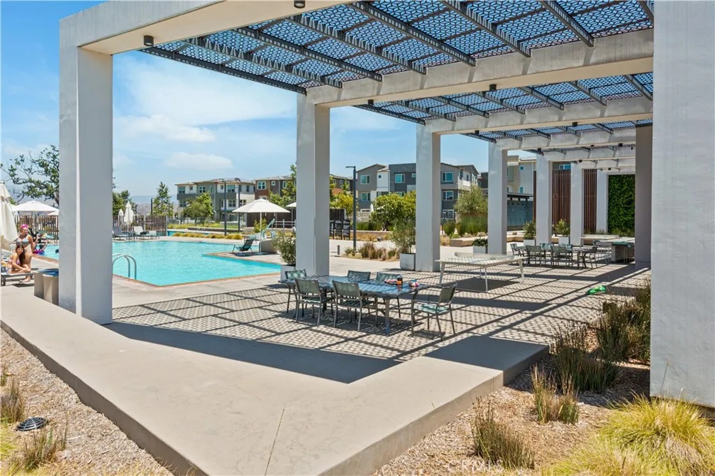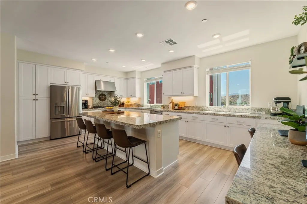 Experience elevated living in this stunning 3-bedroom, 4-bath townhome, ideally situated in the vibrant Five Points neighborhood's coveted Tulip tract. This home, built with premium builder upgrades has soaring ceilings, contemporary finishes, and an abundance of oversized windows that bathe the interior in natural light. The main living area boasts elegant, light-toned wide plank flooring, while plush Berber carpeting adds comfort to the bedrooms. The heart of the home is the chef's kitchen, featuring exquisite granite countertops, white shaker cabinetry, stainless steel appliances, and a generously sized island with ample bar seating, seamlessly connecting to the spacious living room with an oversized balcony, perfect for outdoor relaxation. Each bedroom offers a private en-suite bath and ample closet space, plus a convenient main-level powder room. The luxurious primary suite includes a large walk-in closet, a spacious en-suite bath with a walk-in shower and dual vanity, and a second oversized balcony. An upper-level laundry room adds to the home's convenience. A versatile lower-level bedroom with its own bath is perfect for a home office or guest suite. This smart home features solar panels, a tankless water heater, instant hot water, a smart water valve with leak detection, a smart stove, and an attached 2-car garage. The community HOA provides access to multiple pools with kiddie pool, spa, recreation center, community garden, and several parks. Enjoy proximity to award-winning schools, shopping, Magic Mountain, and easy freeway access.
