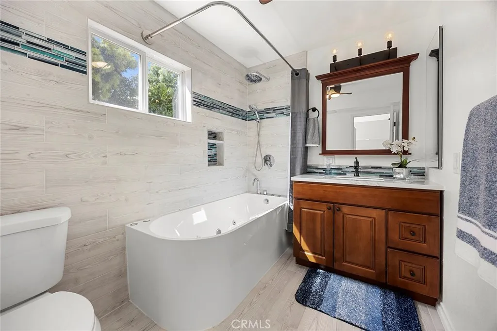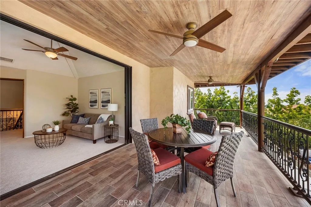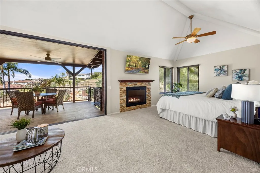 Perched on a spacious 13,500 sq ft lot in a tranquil, elevated setting, this remarkable estate commands 180-degree panoramic views spanning glittering city lights, Disneyland fireworks and rolling hills beyond. A rare offering of versatility, the residence features 7 bedrooms and 5 bathrooms, and an office, thoughtfully designed for both luxurious living and multi-generational flexibility. A grand arrival begins through 8-foot custom double steel doors, opening to a light-filled interior defined by soaring wood-beamed vaulted ceilings. The homes design balances warmth and sophistication, with curated spaces ideal for both intimate living and grand entertaining. The main level showcases a newly remodeled chefs kitchen, appointed with premium granite countertops, custom real-wood cabinetry, double ovens, a four-door refrigerator, garden window, and sleek black stainless-steel appliances. Flowing seamlessly into the living room, the space is enhanced by an upgraded fireplace and framed by expansive windows and California sliding glass doors that open to the outdoor entertaining terrace. A junior ADU offers exceptional flexibility, complete with its own bedroom, walk-in closet, designer bathroom, full kitchen, and living areaperfect for extended family, guests, or additional income potential. Resort-style outdoor living awaits, featuring a custom pool with dramatic rock waterfall, 16-foot slide, and multicolor lighting, a gas fire pit, covered patio, built-in BBQ station with bar seating, and a 7-person Cal Spa with over 50 jetsan entertainers dream set against a breathtaking b