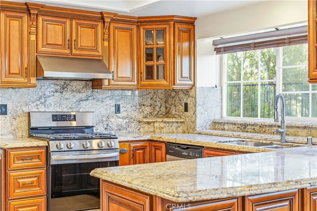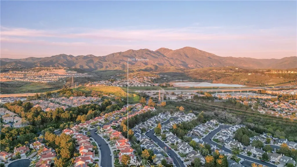 Nestled in the prestigious heart of Mission Viejo, this 4-bedroom, 3-bathroom masterpiece offers an unrivaled lifestyle just moments from the serene Lake Mission Viejo, premier dining, excellent shopping, commuting options, top-tier schools, and scenic hiking and biking trails. This rare jewel redefines luxury living with breathtaking, sun-drenched architecture, meticulous custom detailing, and panoramic views of city lights, green hills and Saddleback Mountain. Be welcomed by a serene, beautifully landscaped exterior featuring mature palm trees, custom lighting, and a tranquil fountain that anchors a welcoming conversational seating area. Step into a breathtaking, light-filled entry with soaring ceilings, engineered wood flooring, custom baseboards, neutral paint and designer finishes. The formal dining room features elegant custom columns sure to set the tone for your formal event, while the expansive family room features a striking see through triple-sided granite fireplace, which is shared with the eat-in kitchen and has direct access to the outdoor patio. Featuring warm and intriguing granite countertops, custom cabinetry, stainless steel appliances, and a serene view from the over the sink window, the kitchen will be the heart of the home with a dedicated eat-in space and the vibe from that fireplace. A convenient downstairs bedroom, an updated three-quarter bath and an inside laundry room with garage access completes the lower level. Upstairs the oversized primary retreat features a private balcony with sweeping views, a double-sided fireplace that leads into the spa