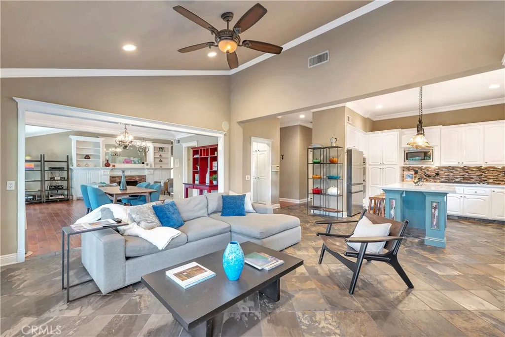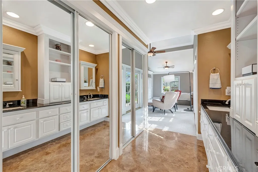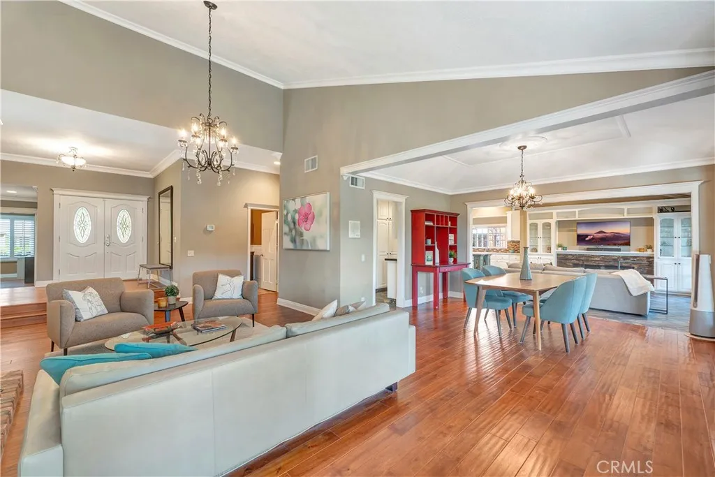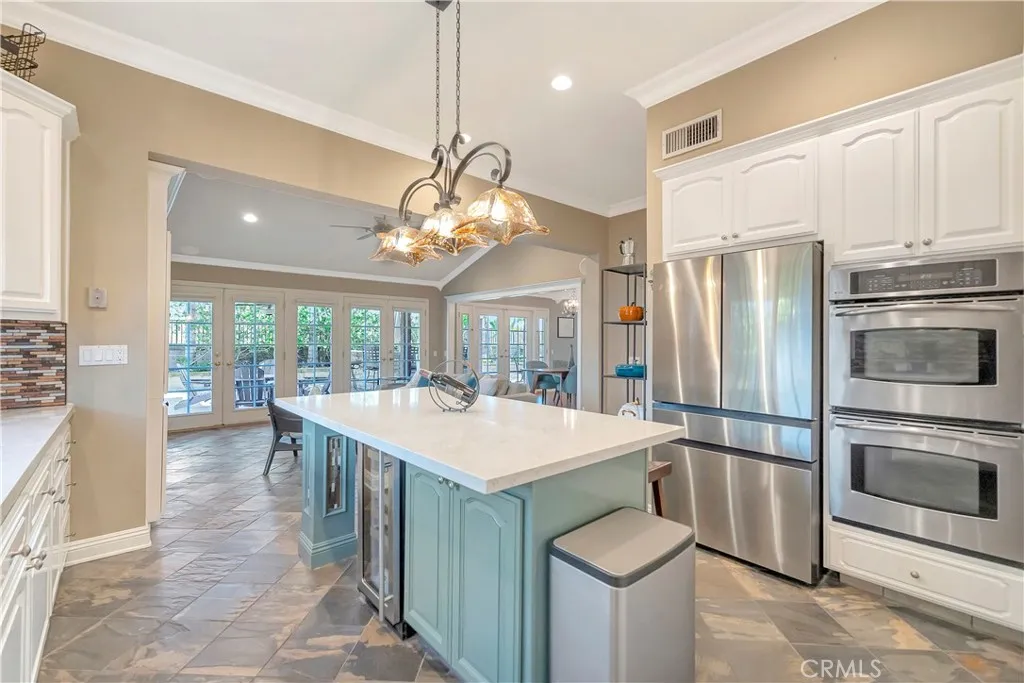 This delightful single story home is situated in the exclusive community of Montbury on the Hill. Nestled in North Lake Forest, this sought-after community features wide streets, customized homes, equestrian and walking trails, two private tennis courts, and two pickle ball courts, all for enhancing your daily enjoyment. Located close to everything, yet you will feel like you are in the country! Simple elegance describes the beauty of this semi-custom home with volume ceilings & French doors throughout; the spacious open floor plan welcomes natural light throughout the entire home. Beautifully remodeled kitchen with stainless steel appliances - gas stovetop, refrigerator, double-oven, microwave, dishwasher; custom cabinetry, gorgeous quartz countertops, spacious center island with wine refrigerator, and custom tile backsplash. A bonus is the adjacent separate pantry area with sink, wine rack, and custom cabinetry. The delightful living room features a wood burning fireplace and custom built-in cabinetry. Entertain in the dining area with coffered ceiling or relax in the family room with fireplace and built-in cabinets. French doors open from each room to the exceptional entertaining back yard. Recessed LED lighting, upgraded light fixtures, and hardwood flooring add to the beauty of this home. The peaceful, spacious master bedroom suite is complimented with volume ceilings, recessed can-lights, built-in cabinetry, and a romantic fireplace. The fully remodeled master bathroom has a separate tub & shower. The large secondary bedrooms, the remodeled secondary bathroom, and the