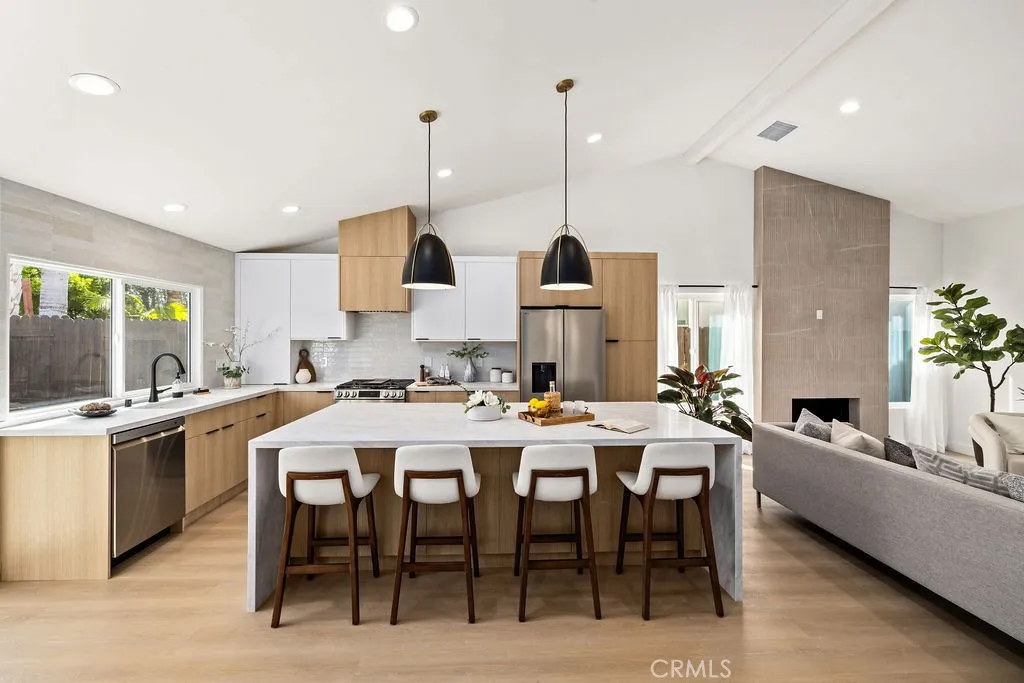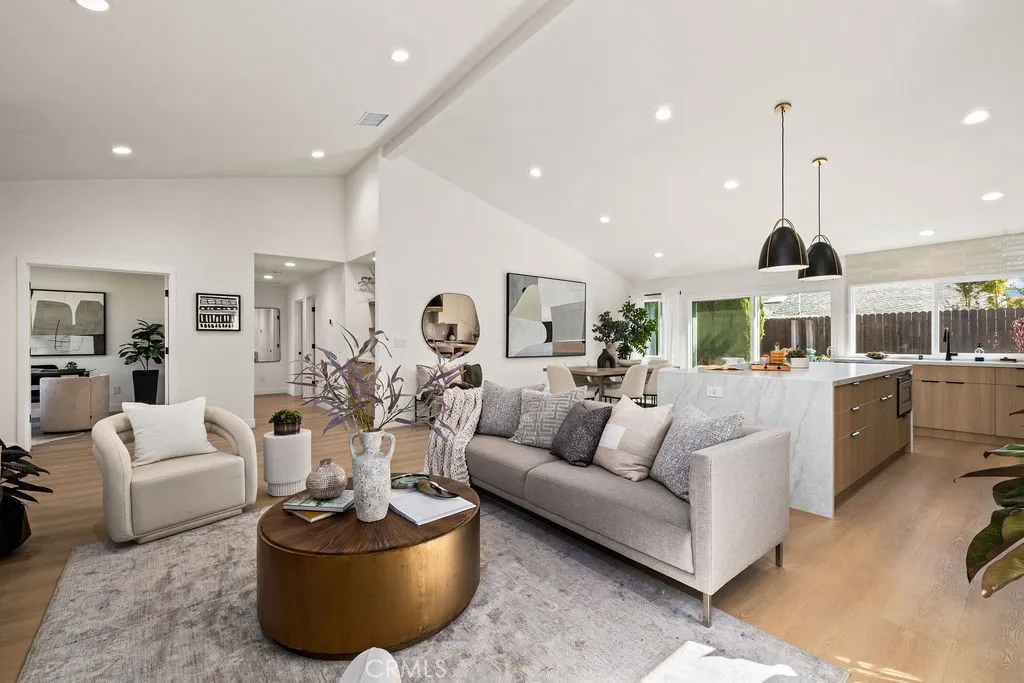 Located in the coveted California Classics by the Sea community in Surf City, Huntington Beach, this stunning 4 BED/2 BATH single story home has been exquisitely remodeled with the highest level of quality encompassing meticulous details throughout. Highlighted by an abundance of natural light, this thoughtfully reimagined home showcases living spaces harmoniously connected under awe-inspired vaulted ceilings. It includes an elegant living room with fireplace, a large dining area, all new chefs kitchen with professional grade appliances, custom cabinetry, and a large island displaying a lovely focal point to admire. Retreat to the serene primary suite complemented with a large, beautifully upgraded walk-in closet with custom organizers alongside a large tranquil en-suite bathroom designed with dual vanities, a freestanding tub in addition to a walk-in shower and accented with beautiful porcelain tile. Other incredible features, but not limited to, include new luxury vinyl flooring, new solid core interior doors, new concrete in the back patio, new A/C and Heater with all new ducting, an upgraded 200 Amp electrical panel and wired for an EV charger, new interior & exterior paint, new entry door, and new PEX plumbing throughout. This outstanding home has ideal dining options indoor and outdoor with a peaceful and private backyard for entertaining. It is in a cul-de-sac location, just minutes to schools, parks, Bolsa Chica Wetlands/Trails, restaurants, shopping and a short drive to the beach! This RARE FIND is a must see and there is more to see than what is mentioned here!
