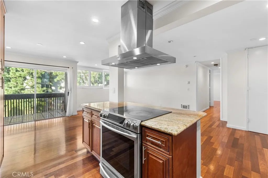 Experience elevated Westside living in this beautifully remodeled top-floor 2-bedroom, 2-bath residence with peaceful greenbelt and treetop views. A bright, open layout filled with natural light showcases cherry hardwood floors, crown molding, and recessed lighting throughout. The updated island kitchen features stainless steel appliances, caf-toned shaker cabinetry, granite countertops, and backsplash, flowing seamlessly into the living and dining areas with a built-in wine cabinet. Both bathrooms are tastefully upgraded with granite counters, subway tile, and frameless glass shower doors. The spacious primary suite offers a walk-in closet, jetted tub, and built-in full-length mirror. Additional highlights include a nearby laundry room and two side-by-side parking spaces next to the elevator. Located in prime Culver City near Silicon Beach, Playa Vista, Downtown Culver City, LAX, the Expo Line, and top shopping and dining, with Fox Hills Park just a short walk away. The pet-friendly Pines community offers resort-style amenities, including a heated pool, fitness center, saunas, clubhouse, and Amazon lockers. HOA dues include water, trash, and insurance, and residents qualify for Culver City Unified School District.