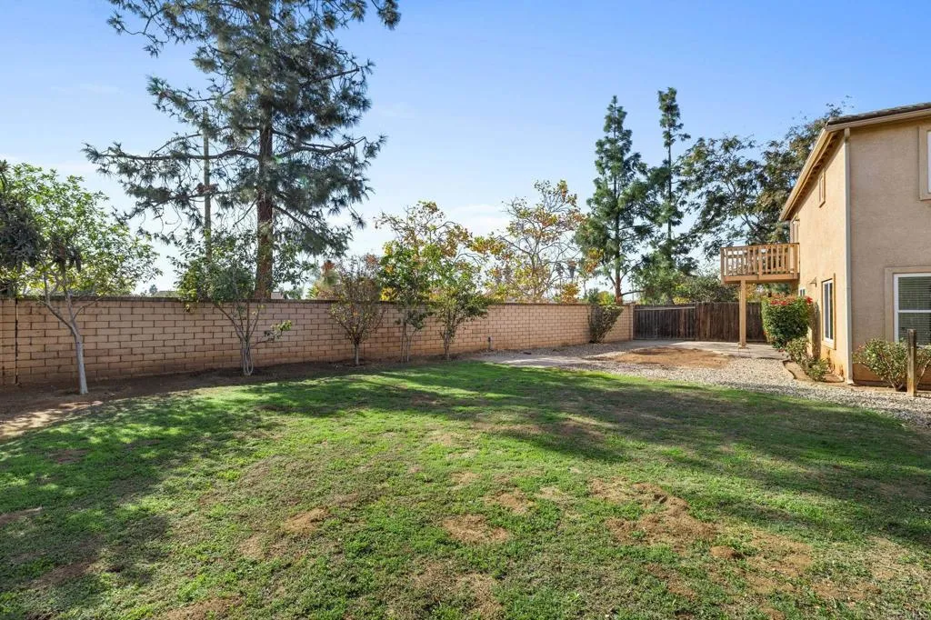 Nestled in the scenic eastern hills of Escondido, this spacious move-in-ready home offers one of the most versatile floor plans in the neighborhood with 4 bedrooms, 3 full bathrooms, and a large optional 5th bedroom or office ideal for multigenerational living, remote work, or growing households. Step inside to a bright, open interior featuring updated flooring throughout, fresh interior paint, and modern LED recessed lighting, while a welcoming gas fireplace creates a warm gathering space for everyday living and entertaining. The spacious kitchen showcases refreshed cabinetry with ample storage and a functional peninsula that flows seamlessly into the main living areas, complemented by brand-new kitchen appliances and a new washer and dryer for added convenience. A full bedroom and bathroom on the main level provide flexibility for guests or a private workspace, while upstairs youll find an oversized primary suite along with three additional bedrooms and a dedicated laundry room designed for comfortable daily living. The expansive backyard offers a private outdoor retreat with large grassy areas for play and mature fruit trees including guava, tangerine, pomegranate, and apple, all with low-maintenance landscaping so you can spend more time enjoying and less time maintaining. Additional highlights include a 2-car garage with a large driveway, no HOA, and no Mello-Roos, all ideally located near Dixon Lake, Daley Ranch trails, Mayflower Dog Park, shopping, dining, and convenient freeway access a rare opportunity to own one of the largest and most flexible homes in this estab