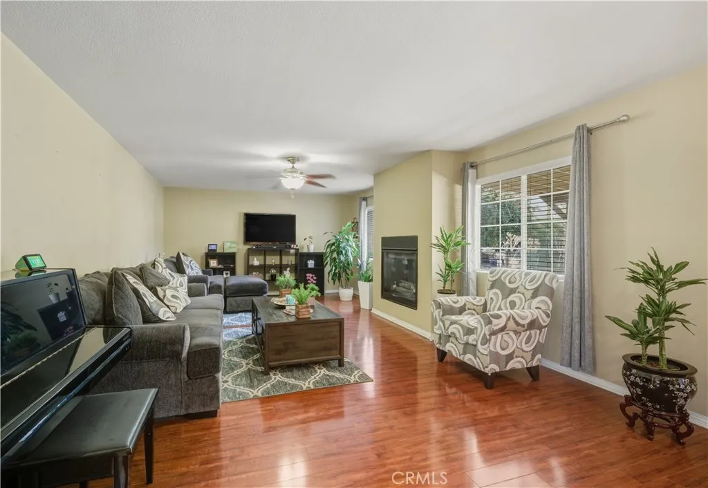 Featuring 3,206 square feet of living space, this 5 bedroom, 3 bathroom home is tucked within a cul-de-sac and includes a 3-car garage. Built in 2006 with a low HOA of $78 per month, the home features fresh interior paint and new flooring in the kitchen, giving it a clean, updated feel. The kitchen is open to the family room, creating a comfortable space for everyday living and gatherings. A downstairs bedroom, ideal for guests, extended family, or a private office, sits just across from a full bathroom with a walk-in shower. Upstairs, youll find generously sized secondary bedrooms, a spacious loft ideal for a game room, media space, or additional entertaining area, and a convenient upstairs laundry room. The primary suite is extra large and features an oversized walk-in closet with plenty of room for storage and organization. The 7,841 square foot lot offers a backyard designed for entertaining, complete with a covered patio, stamped concrete, gazebo, and a small putting green. Centrally located near the 15 freeway, shopping, and schools, this home offers space and flexibility in a cul-de-sac setting.