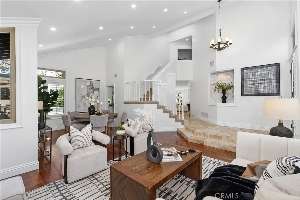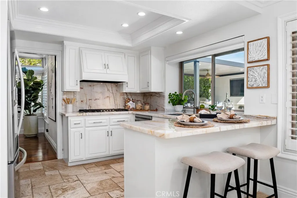 Designed to bring people together and create lasting moments, 28372 La Falda centers around a breathtaking backyard oasis complete with a reimagined pool, outdoor living room, and exceptional privacysetting the stage for the ultimate California lifestyle. This exceptional home offers the largest and most sought-after floor plan in the tract (feels larger than the 2288 sq ft!), perfectly blending comfort, style, and indoor-outdoor living. Enter to soaring, grand ceilings and travertine and wood flooring that create an immediate sense of space and light. The main level features a downstairs bedroomcurrently used as an officeand a fully remodeled bathroom nearby, ideal for guests or flexible living. The bright, white chefs kitchen overlooks the stunning backyard and showcases white hardwood cabinetry, sleek quartzite countertops, and stainless-steel Bosch/GE appliances including new dual ovens, dishwasher, refrigerator, and cooktop. The spacious family room flows seamlessly from the kitchen and is anchored by a cozy fireplace with matching crystal-like stone, making it ideal for both everyday living and entertaining. The backyard is truly show-stopping, featuring a completely rebuilt contemporary pool with exquisite stone and tile work, all-new hardscape, and remarkable privacy with mature trees and no rooftops behind. Two modern metal pergolas create a fully realized outdoor living experience, complete with a fan, TV, gas fireplace, and a chef-worthy outdoor kitchen with stainless steel BBQ, burners, and an oversized bar finished in striking blue quartz-like tilean entertaine