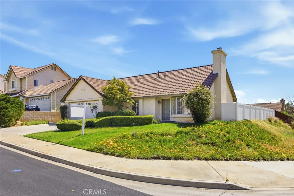 Welcome to a charming single-story home located within the highly sought-after Sunnymead Ranch community. Featuring three bedrooms and two bathrooms, this home sits on a desirable corner lot and offers a functional layout with great potential. Built in 1988 and set on a 7,841 sq ft lot, it combines comfort, space, and opportunity. The inviting curb appeal includes a well-maintained lawn, trimmed bushes, and white vinyl side fencing. A spacious driveway and two-car garage provide everyday convenience. Inside, the bright living room features multiple front-facing windows, laminate wood-style flooring, and a classic brick fireplace. The space flows into the dining area and kitchen, where sliding glass doors and additional windows bring in natural light. The kitchen offers natural wood cabinetry, white tile countertops, and a functional layout, ready for your personal updates. All bedrooms are carpeted and comfortably sized, while the bathrooms feature matching cabinetry and clean white countertops. The backyard offers plenty of space to create your ideal outdoor setting, whether for entertaining, relaxing, or future enhancements. As part of Sunnymead Ranch, residents enjoy access to a private lake, pool, spa, clubhouse, fitness center, and walking trails. Conveniently located near shopping, dining, parks, and schools, this home is a great opportunity to own in one of Moreno Valleys most established communities.