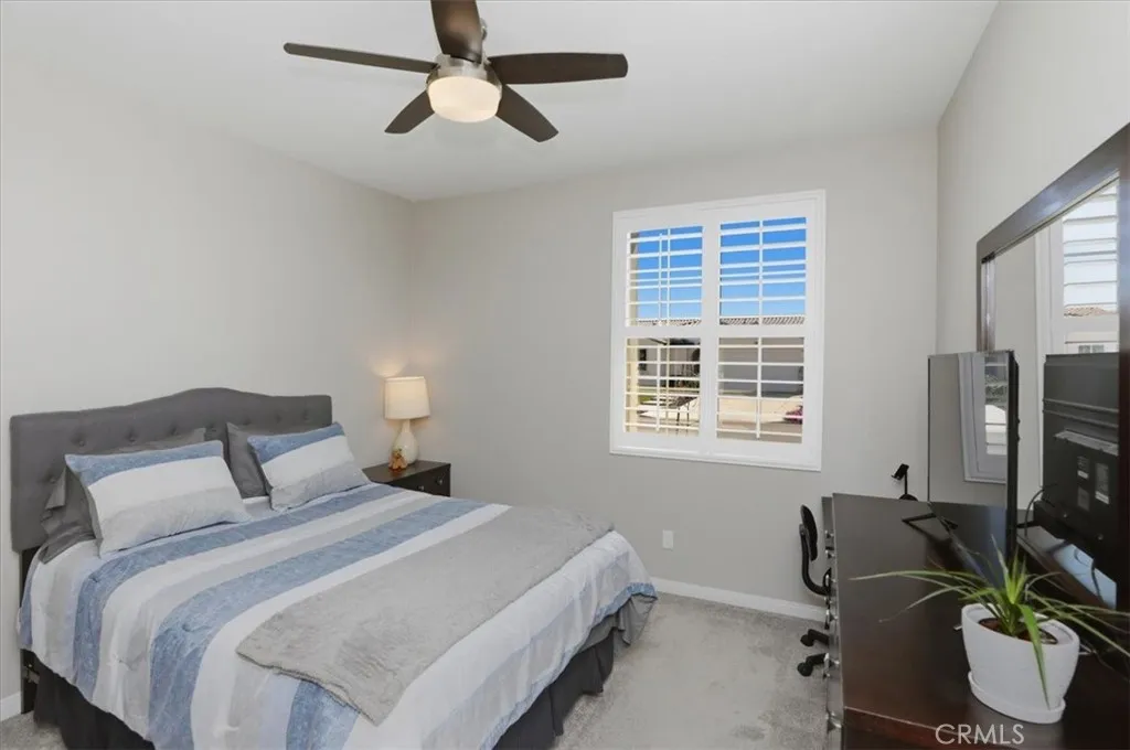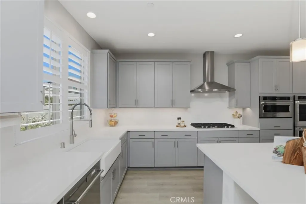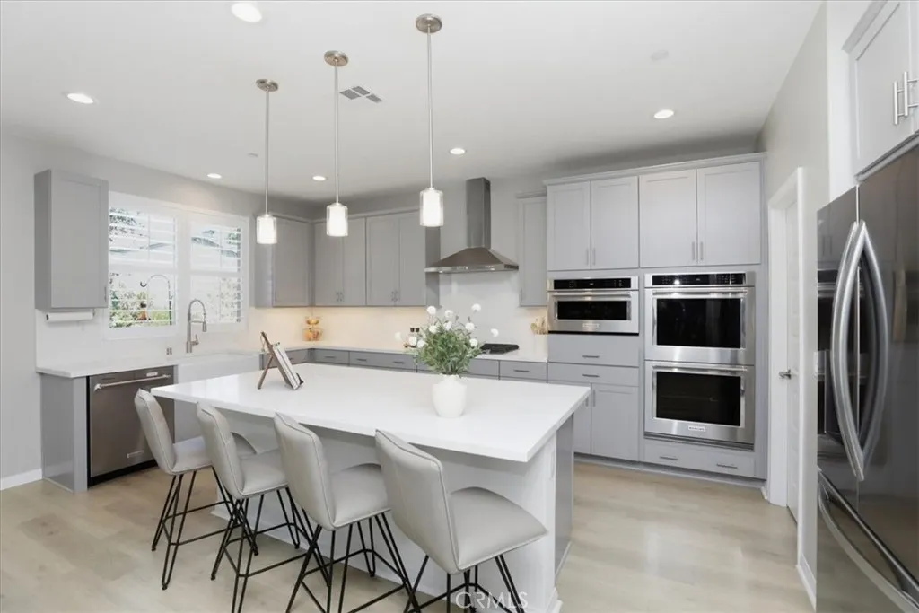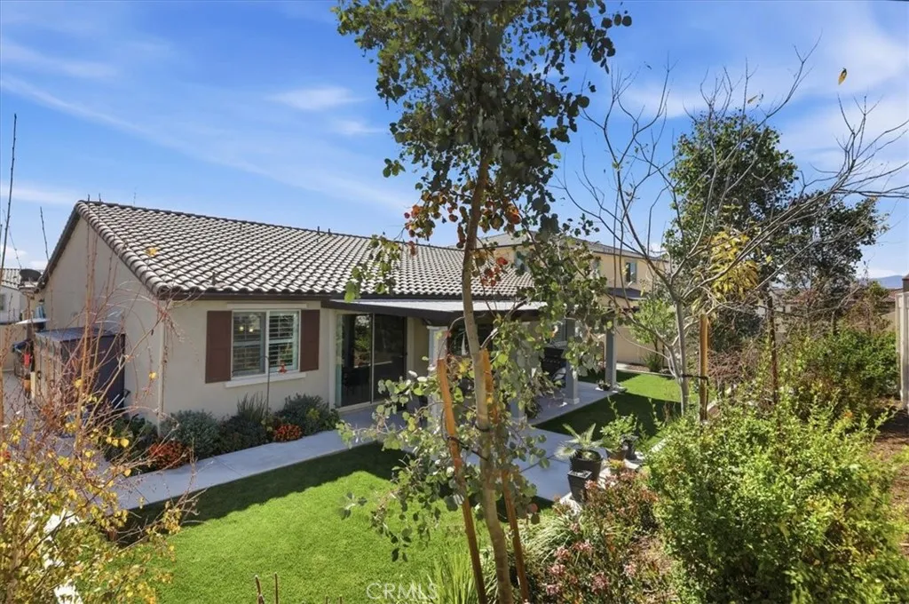 Welcome to this beautifully upgraded single-story home located in a sought-after newer gated community of Highland Grove. Less than 3 years old, Offering 2,550 square feet of thoughtfully designed living space, this spacious residence features four bedrooms and three full bathrooms, perfectly blending comfort and functionality. The open and inviting floor plan includes a formal living room and a formal dining room, ideal for entertaining guests or hosting special gatherings. At the heart of the home is a stunning upgraded kitchen showcasing elegant quartz countertops and backsplash, premium stainless steel KitchenAid appliances, and abundant cabinetry, pendant lighting, porcelain farm sink, under cabinet accent lights and pantrydesigned to impress even the most discerning chef. The living room is perfect place to unwind, very spacious and equipped with 5.1 speaker system. The private primary suite is a true retreat, featuring a spa-like bathroom with luxurious finishes, dual vanities, frameless shower, soaking tub and a spacious walk-in closet complete with custom built-ins for optimal organization. Additional highlights include a three-car tandem garage offering ample parking and storage space, along with modern upgrades throughout the home that enhance both style and convenience. Other amenities include ceiling fans, walk-in closets in secondary bedrooms, tech center currently used as a coffee bar, plantation shutters, drapes, 9 ft ceilings, integrated smart home technology and energy efficient designs to include a solar system with a battery, tankless water heater, three