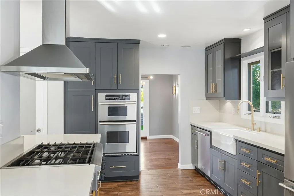 Live in the heart of it all, tucked away in the Hollywood Hills. Welcome to 3148 Barbara Court! Located on a quiet street yet moments from everything Los Angeles has to offer, this light-filled residence delivers the perfect blend of privacy, comfort, and opportunity. From the moment you enter the foyer, the home feels expansive and inviting, an ideal setting for both everyday living and effortless entertaining. The living room features soaring ceilings, rich wood flooring, and a refurbished floor-to-ceiling wood burning fireplace with a marble base. Recessed lighting, statement sconces, and architectural niches create a warm yet modern ambiance, ready for a new owners personal vision. The spacious dining area flows seamlessly to an elevated fenced patio, through a French door, and also connects to the beautifully updated galley kitchen. Designed for both function and style, the kitchen showcases quartz countertops, stainless steel appliances, abundant cabinetry with sliding pull-outs, glass display cabinets, and custom windows. An accordion pass-through window was created to open to a counter bar, perfect for indoor/outdoor entertaining. The kitchen also opens to a generous family room lined with French doors leading to the backyard patio with ceiling speakers, enhancing the homes seamless indoor/outdoor lifestyle. The private primary suite offers a walk-in closet, recessed lighting, French doors to the yard, and a stunning updated ensuite bath featuring marble flooring, a herringbone Italian marble walk-in shower, new cabinetry, and a heated-seat toilet. Outdoors, you'll