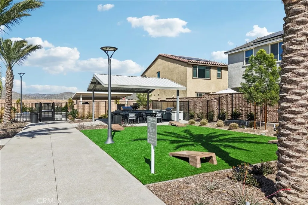 Located on a quiet cul-de-sac in Winchester, this 2023 built, move-in ready home offers modern living with fully owned solar, energy efficiency, and a smart open layout. Featuring 3 bedrooms, 2.5 bathrooms, a versatile loft, and 1,697 sq ft, this newer construction home blends comfort, style, and functionality. The open-concept floor plan connects the spacious living room, dining area, and modern kitchenperfect for entertaining. The kitchen features quartz countertops, a large center island, stainless steel appliances, and abundant cabinetry, creating a space thats both beautiful and practical for everyday living. Upstairs youll find a flexible loft space ideal for a home office, media room, or play area, along with a private primary suite featuring dual sinks, a walk-in closet, and a spacious bathroom designed for comfort and convenience. Step outside to the private backyard featuring a brick-paved patio, creating the perfect setting for outdoor dining, relaxing evenings, or entertaining friends and family. Additional highlights include fully owned solar panels (no lease), upstairs laundry, energy-efficient construction, and a 2-car attached garage. Residents enjoy resort-style amenities including a pool, spa, BBQ area, playground, and picnic spaces. Conveniently close to shopping, dining, parks, schools, and commuter routes, this home offers the perfect blend of modern comfort and community lifestyle.