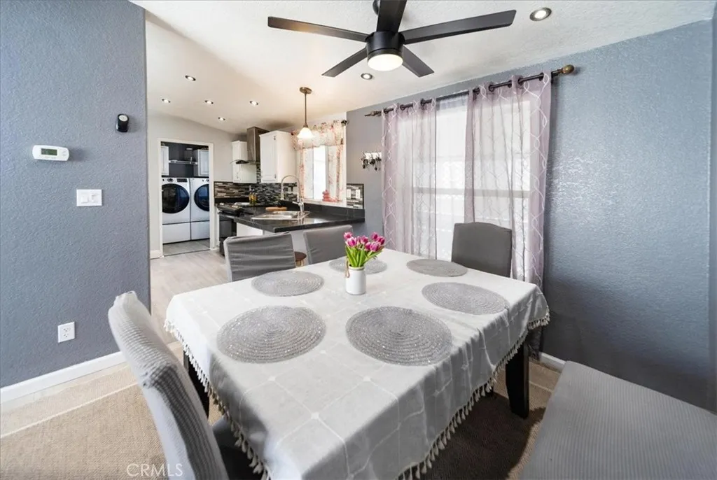 Welcome to your fresh start and your front-row seat to the lake life youve been dreaming aboutthis beautifully upgraded 3 bedroom, 2 bath manufactured home in an all-age community near Lake Elsinore is the perfect launchpad for first-time buyers or anyone ready to trade ordinary for extraordinary. From the moment you step inside, youll feel the love in the details: newer flooring underfoot, fresh interior paint throughout, and a bright, open layout that feels both modern and welcoming. The kitchen shines with granite countertops, stainless steel appliances, and plenty of space to cook, gather, and make memories, while indoor laundry adds everyday convenience right where you need it. The centrally located hall bath has been tastefully renovated, and the upgraded primary suite offers a refreshed private retreat designed for rest and recharge. A new AC fan installed just two years ago keeps things running comfortably, giving you peace of mind as you settle in. Step outside and the magic continuesyour backyard is a tropical escape with mature fruit trees and lush foliage, perfect for morning coffee, weekend barbecues, or simply unwinding after a day on the water. The community amenities elevate the lifestyle even more, featuring a sparkling pool, relaxing hot tub, gym, and billiard room, plus RV and recreational parking availablebe sure to contact park management for full details. The affordable land lease keeps monthly costs approachable, making homeownership feel not just possible, but practical. The park welcomes up to two dogs with a size limit, so reach out to the park off