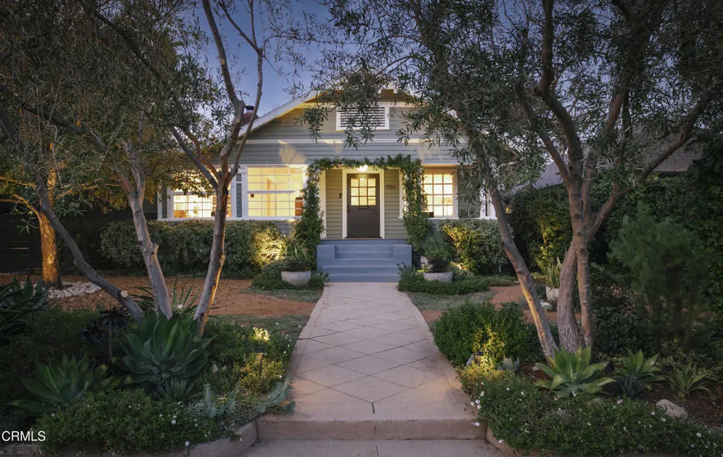 Charming 1904 modern bungalow with old world charm, tastefully updated with modern amenities. 3 beds/2 baths fenced in private garden oasis compound with detached 600 SqFt studio/office space in the heart of quaint and walkable South Pasadena. Close to Mission Street shops, coffee houses, restaurants, Trader Joe's, Garfield Park, and Metro Blue Line, with award-winning South Pasadena Schools. Private compound with many period details complemented by abundant upgrades. Garden designed by Campion Walker featured in Los Angeles Times magazine. Native plants, fruit trees, herbs, gas fire pit, cafe lights, plenty of space for outdoor entertaining. Bright and airy modern designer kitchen with honed marble countertops, vaulted ceilings, recessed lighting, designer fixtures and hardware. Refinished hardwood floors, gas fireplace with artisan tiles, office nook/library with built-ins, crown molding, new foundation, new HVAC, updated plumbing and electrical, built in closets, updated bathrooms. Separate 600 SqFt finished garage for office//artist studio or gym with floor to ceiling built-ins, polished concrete floors, ductless HVAC, and roll up garage door. Outdoor lighting, automatic drip irrigation, alarm system, large attic with access door and ladder. Bright, private, abundant character details, large parking area for multiple cars, newly painted inside and out. A frequent location for film shoots. A private oasis in the heart of downtown South Pasadena. Move in ready!
